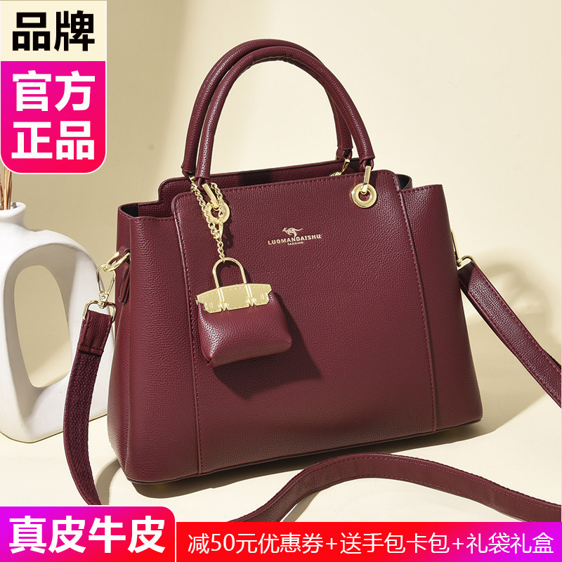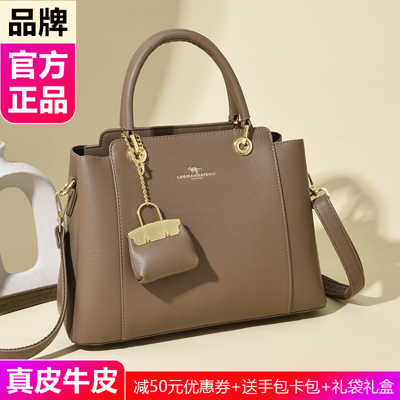 袋鼠品牌真皮包包2025新款大气送妈妈牛皮手提包时尚中年斜挎女包