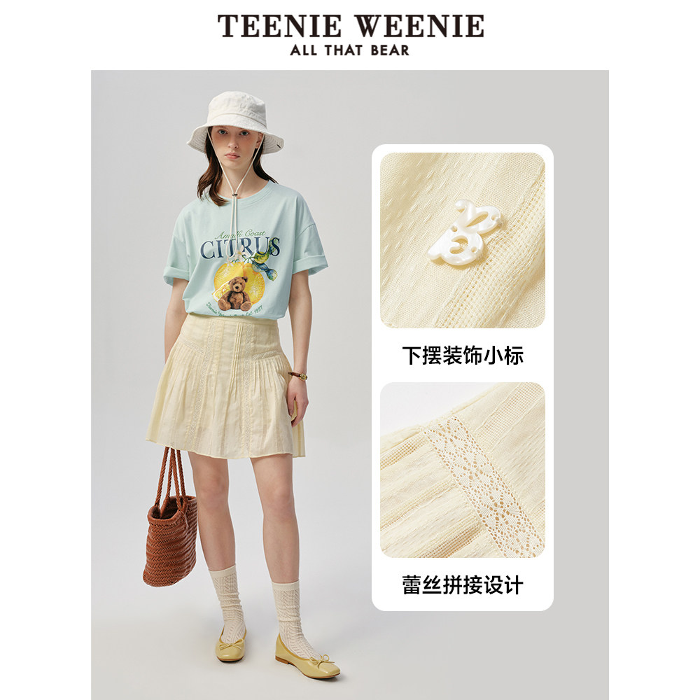 TeenieWeenie小熊奥莱女装半身裙2025夏款法式气质蕾丝蛋糕半身裙
