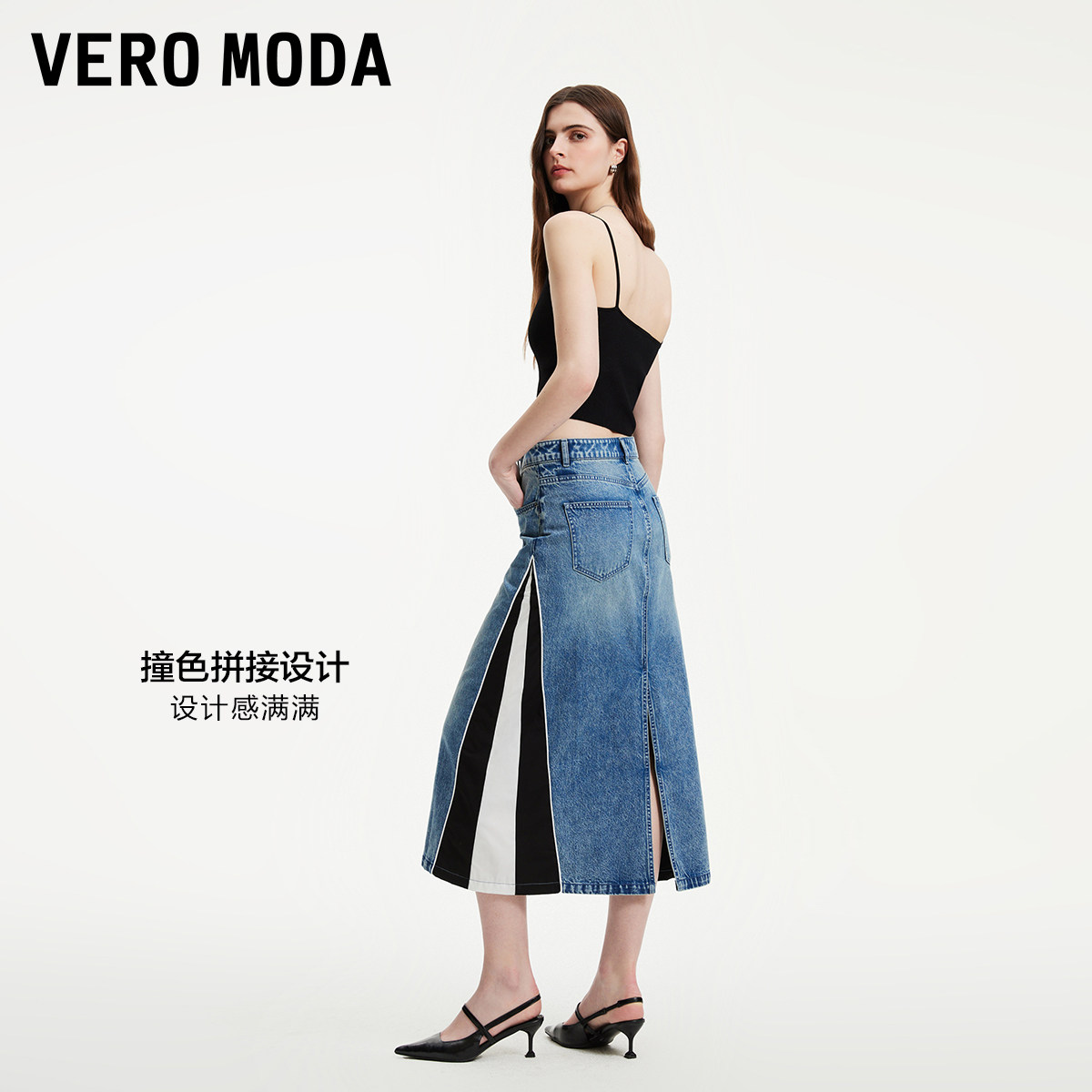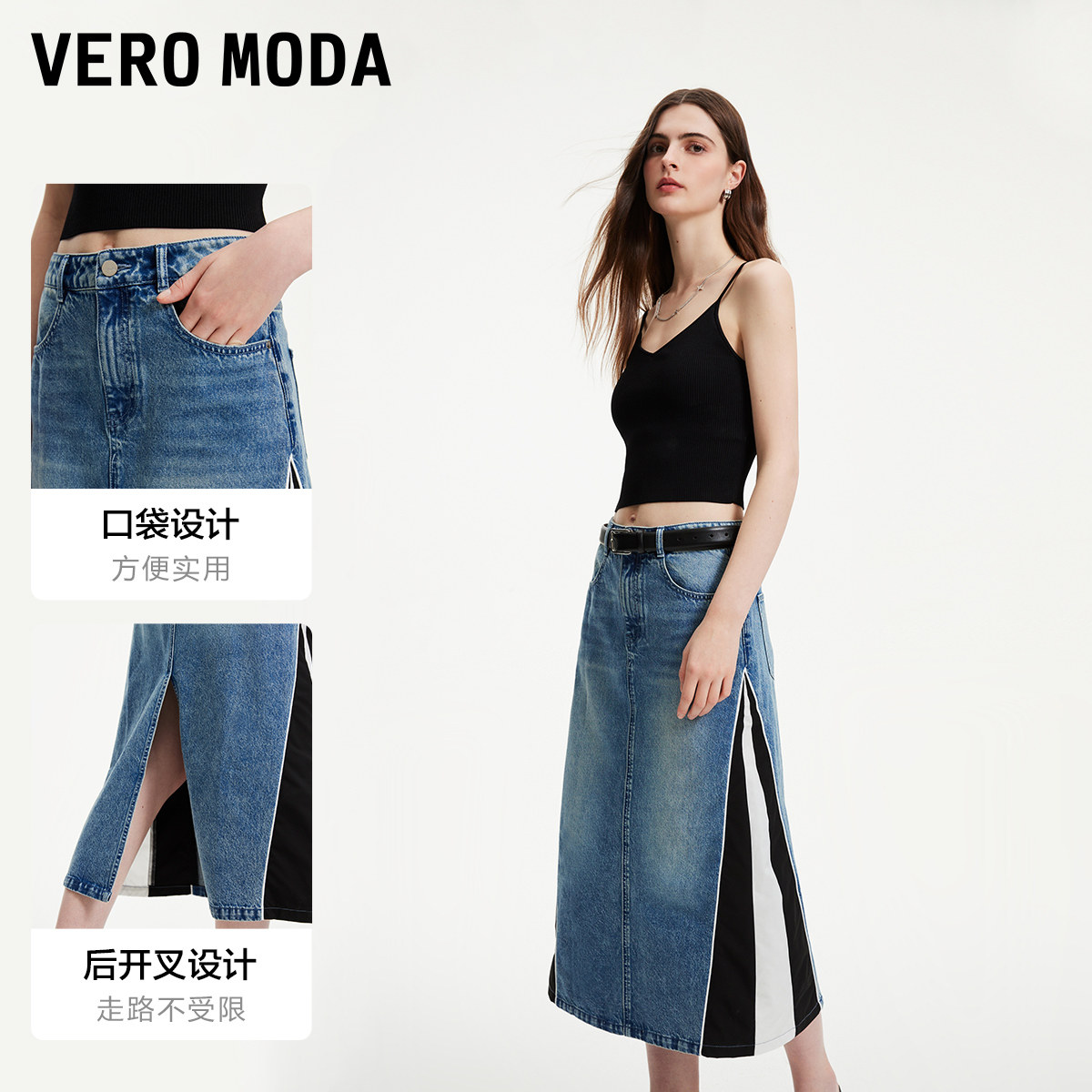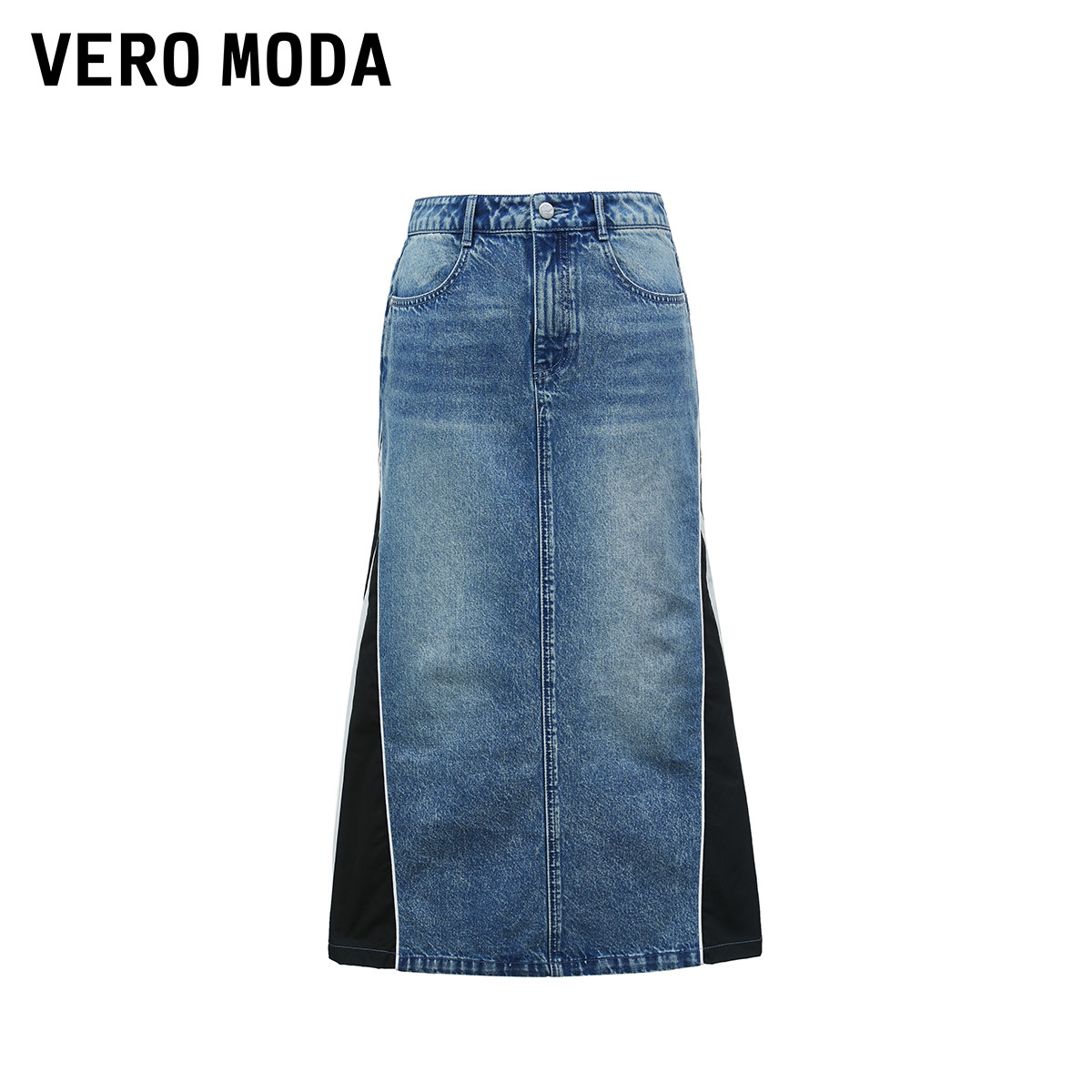 Vero Moda奥莱半身裙夏季新商场同款牛仔拼接直筒休闲百搭中长裙