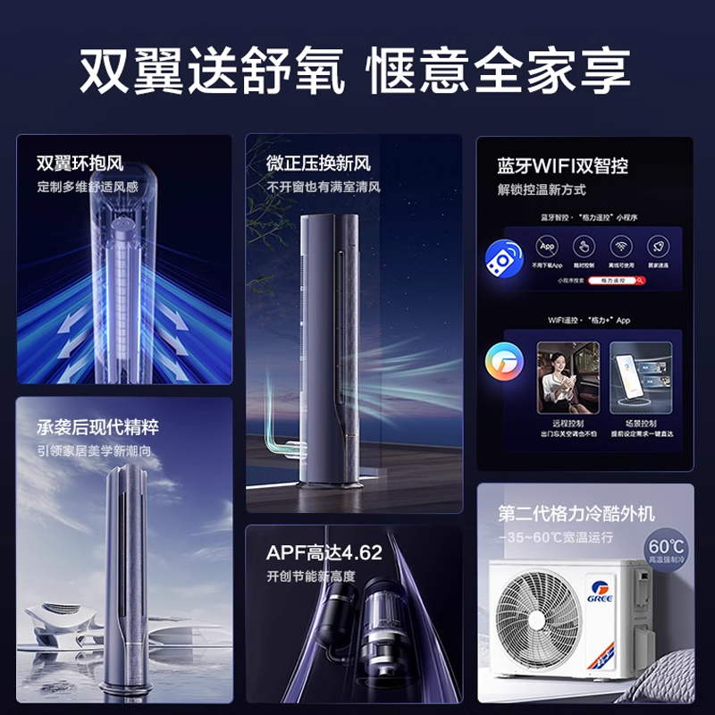 【格力官方】新一级变频冷暖3匹客厅智能立式柜机新风空调云舒氧