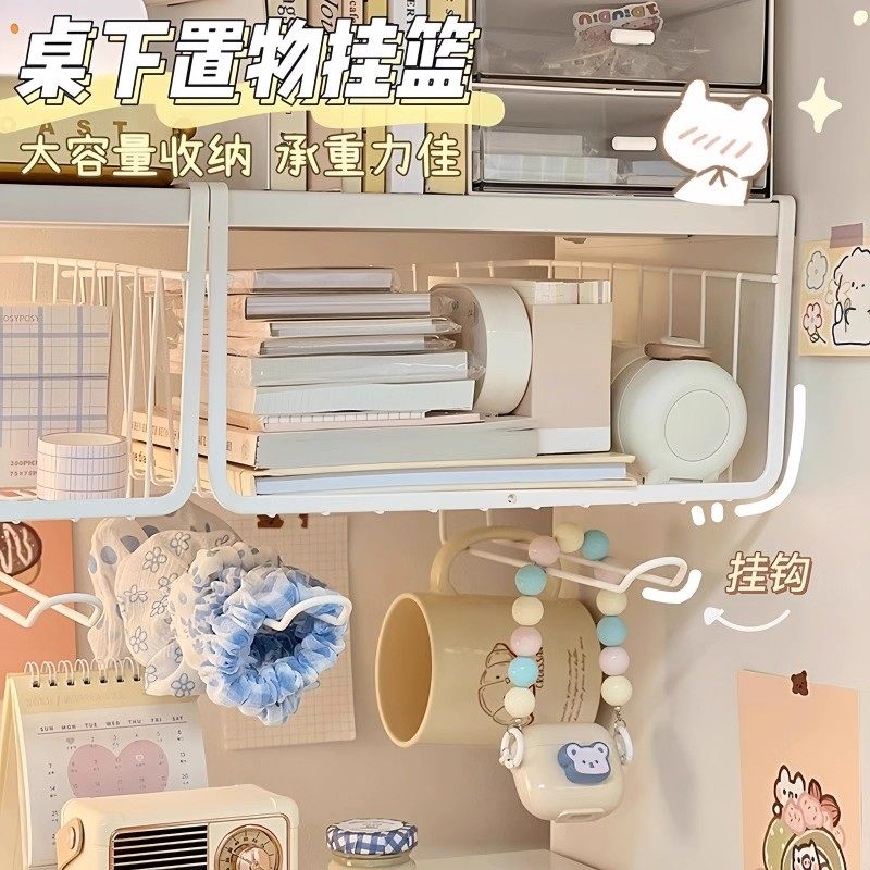 桌下收纳架置物架宿舍挂篮好物书桌下挂衣柜分层隔板桌面挂架神器