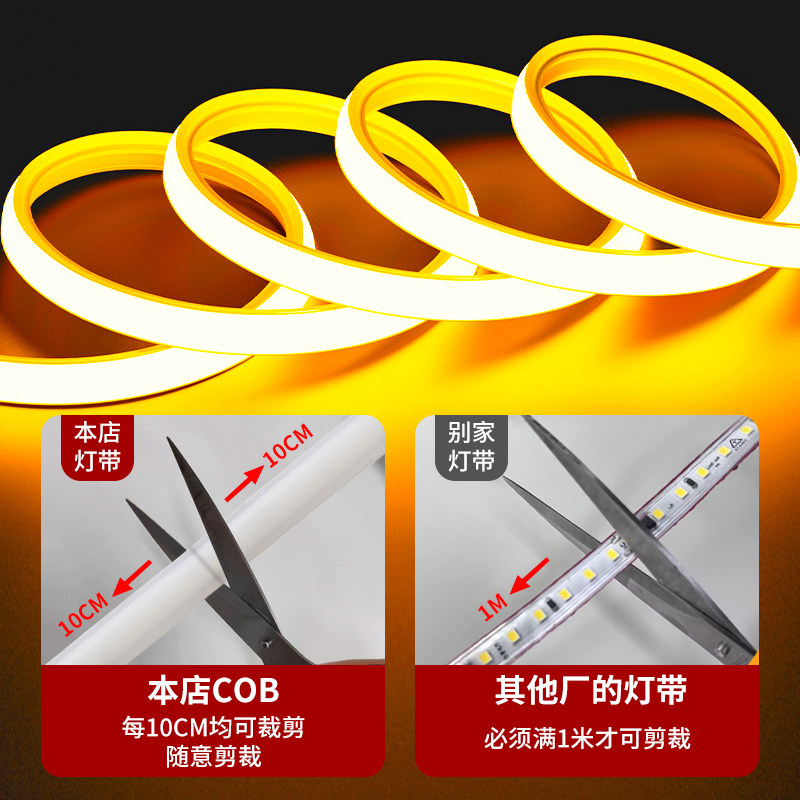 鼎雁LED灯带COB灯条220v超亮户外防水照明室外庭院自粘客厅线形灯