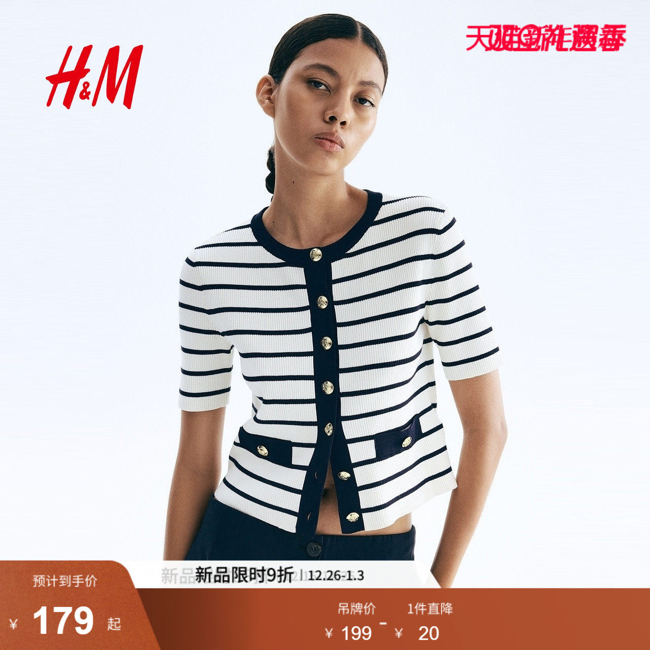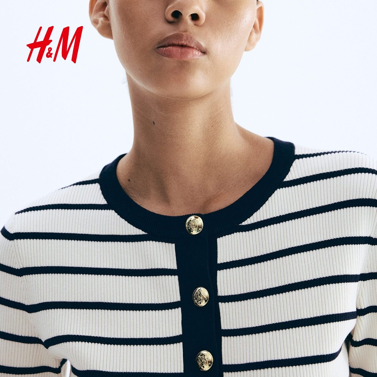 HM女装毛针织衫2025年冬季新款精致时尚休闲小香风开衫1294717