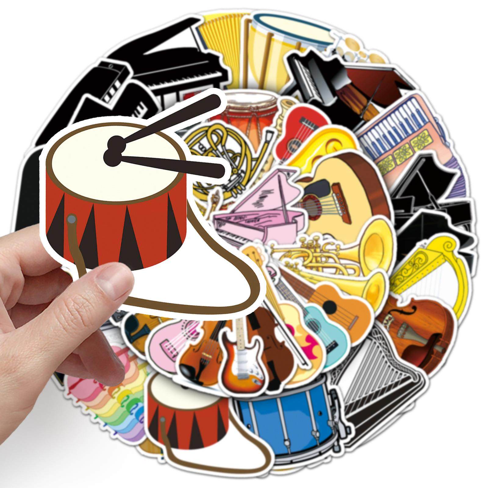 50张乐器涂鸦卡通跨境小提琴钢琴咕卡DIY滑板手机行李箱贴纸防水