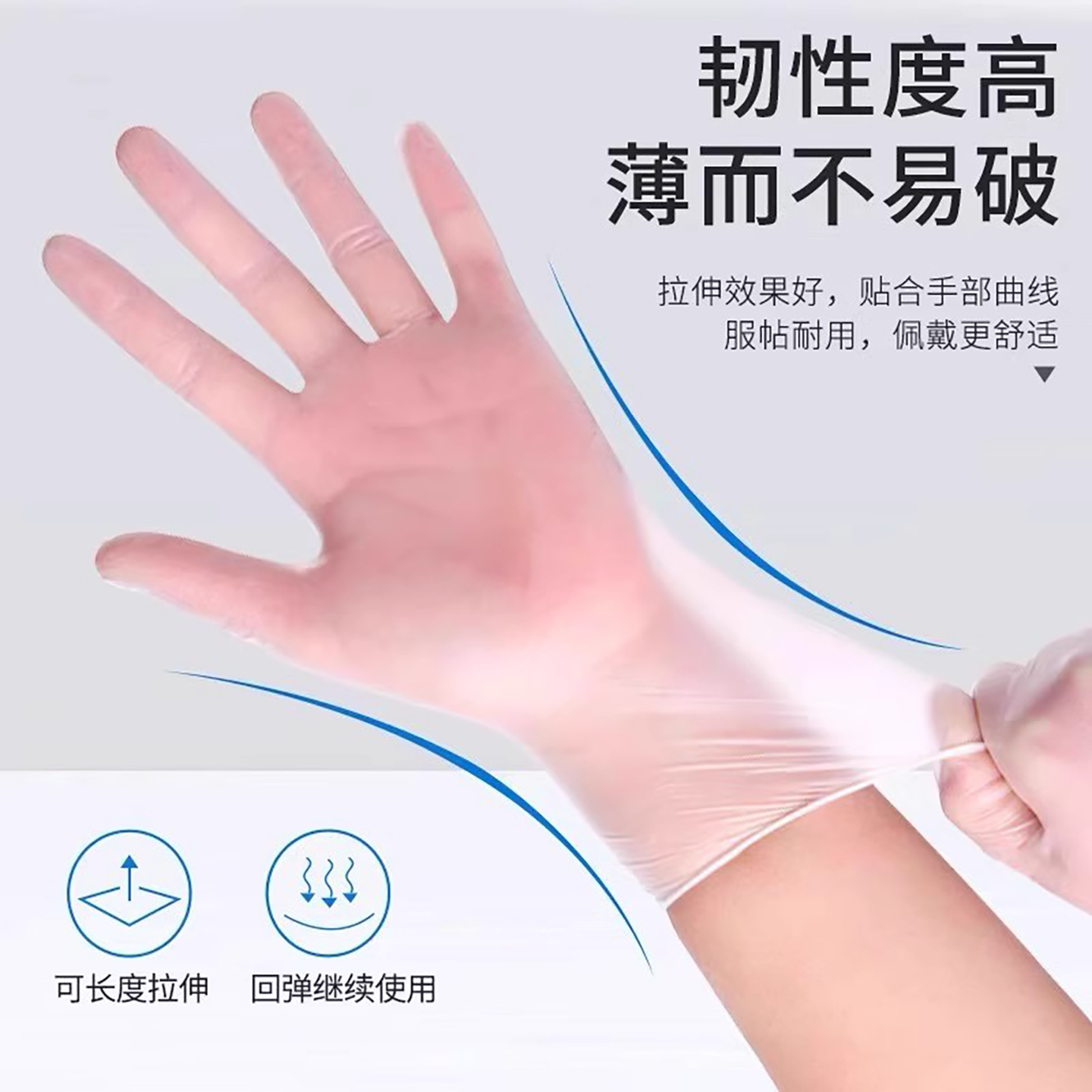 100只一次性pvc透明手套劳保丁腈乳胶橡胶厨房工作手套塑料透明