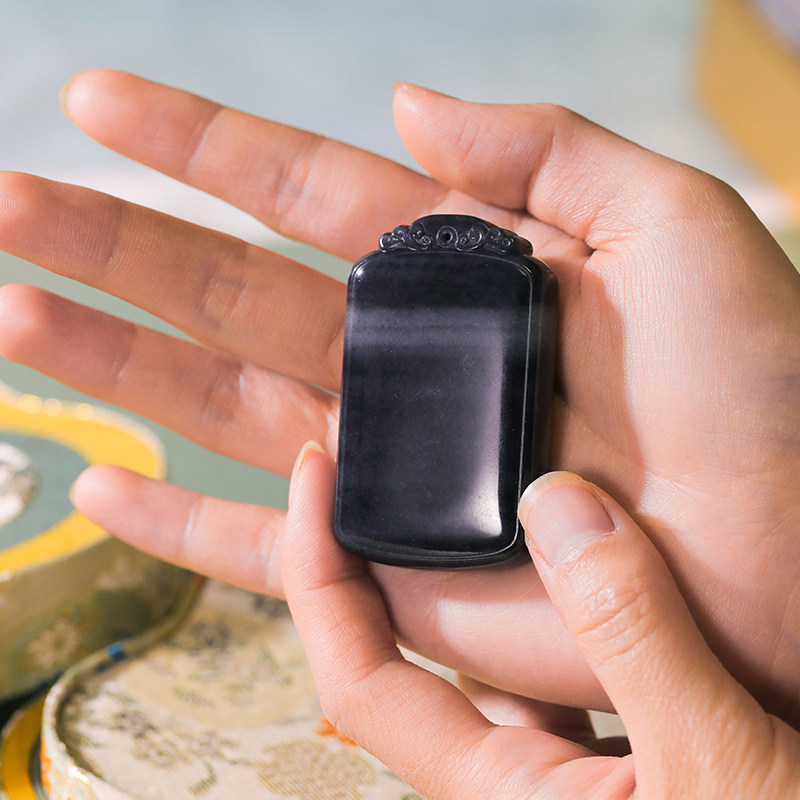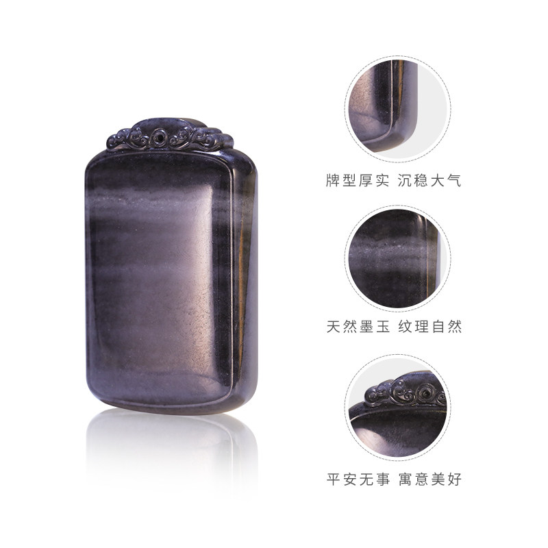 和合玉器和田玉墨玉平安无事牌玉石玉牌挂件吊坠新疆礼物男女