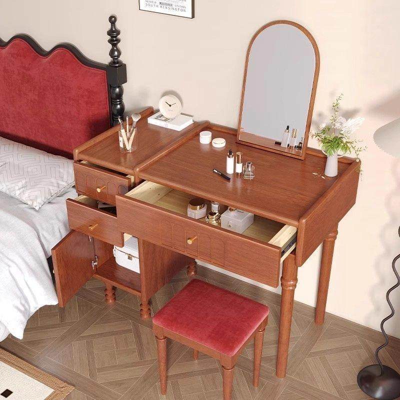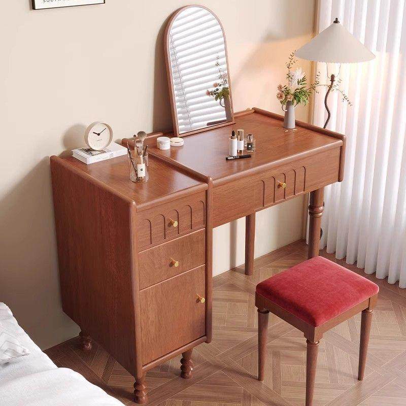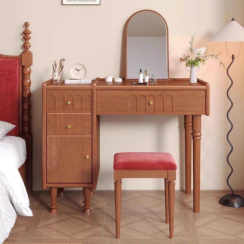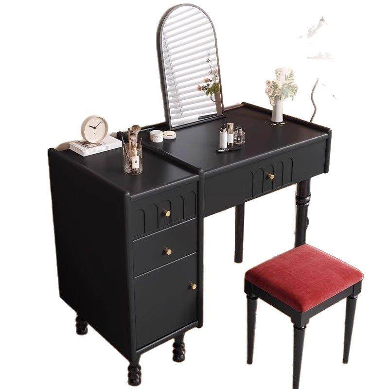 中古风实木梳妆台家用小户型化妆桌法式复古黑色白蜡木带镜化妆台