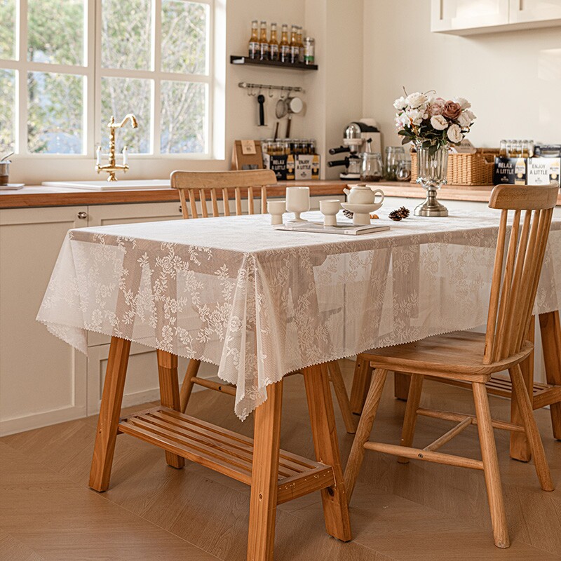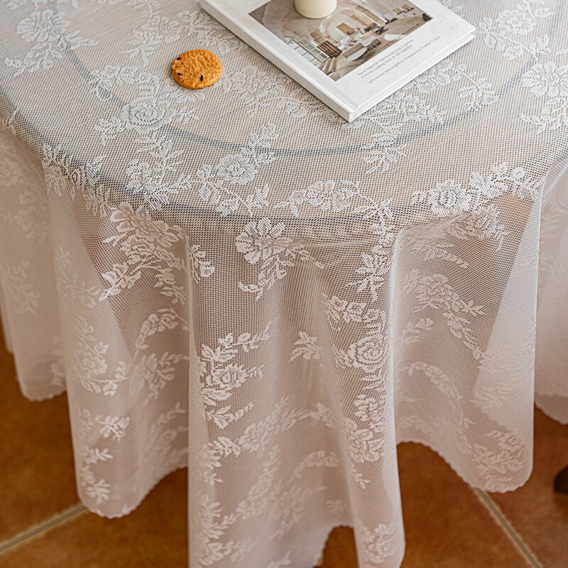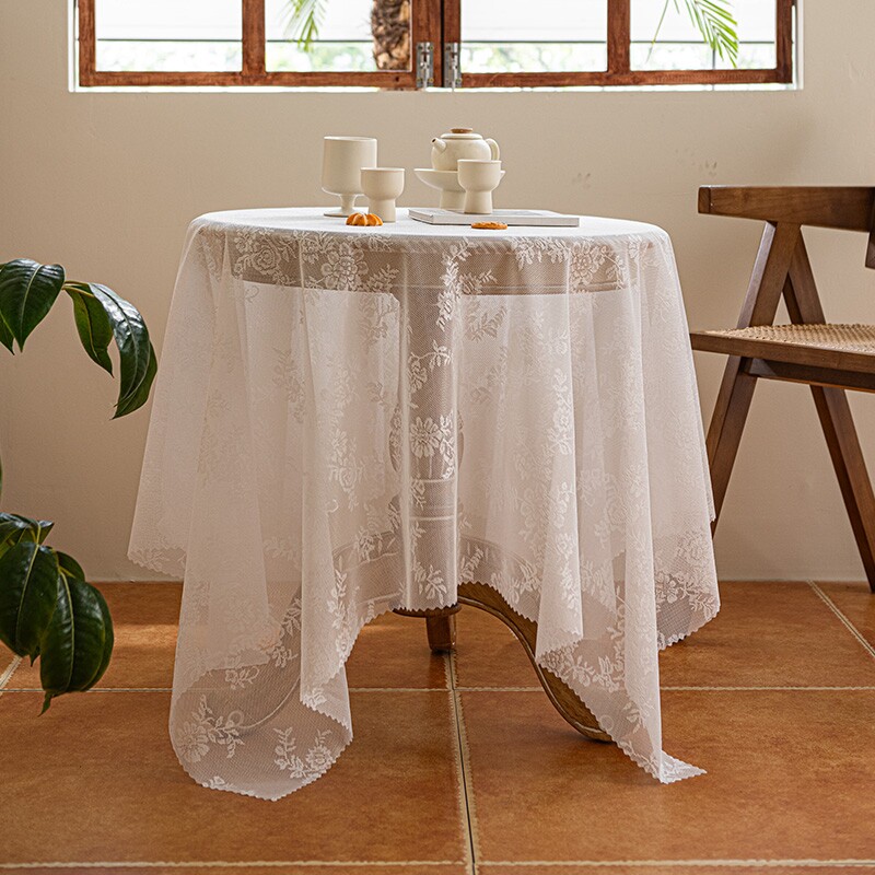 白色园桌布轻奢高级感蕾丝纱台布电视柜茶几垫装饰布法式清新盖布