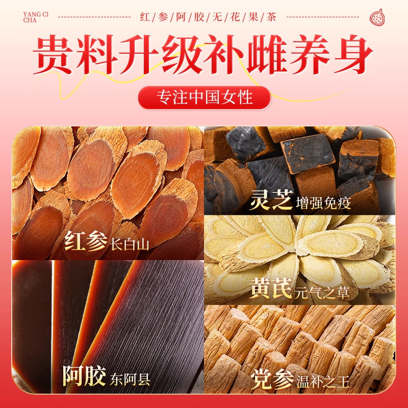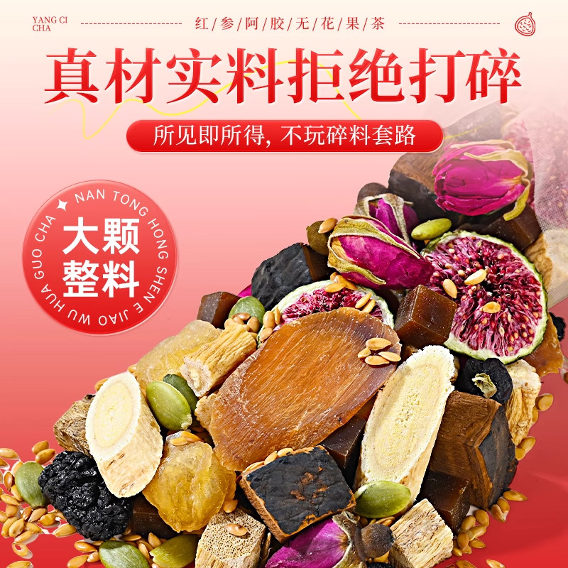 国药药材红参玫瑰灵芝补养女士气血养生秋冬女神花茶熬夜药材阿胶