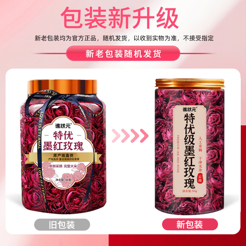 云南墨红玫瑰花茶特优级新非鲜冻干大朵重瓣鲜花官方旗舰店可食用