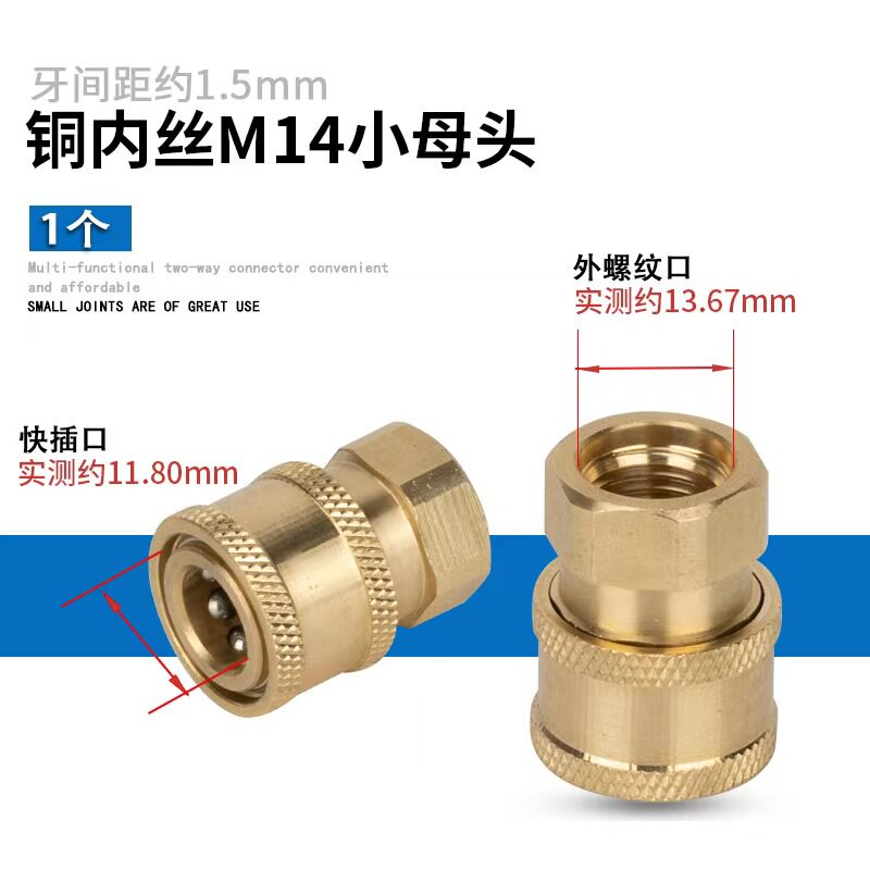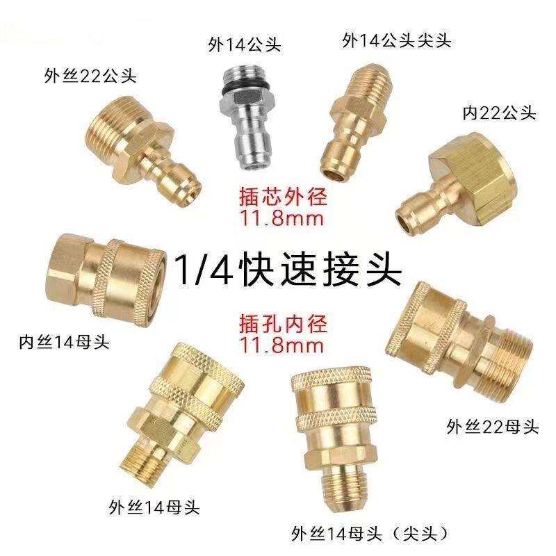 1/4高压水枪接头快速洗车机水枪进出水嘴清洗机转换接头铜快接M14