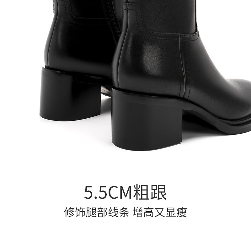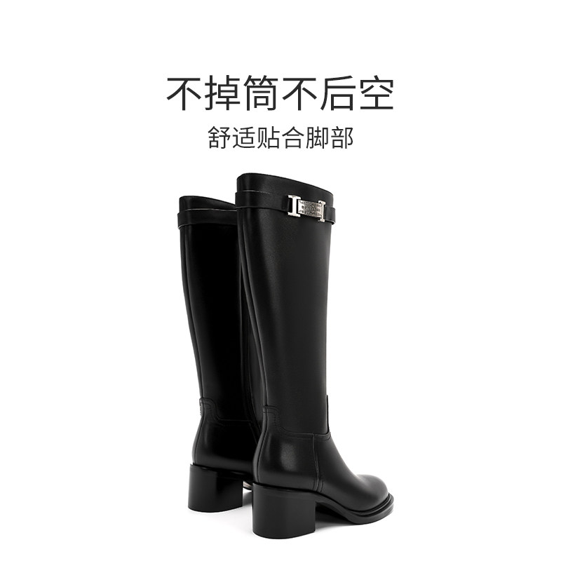 哈森气质女靴冬季新款粗跟长筒时装靴不过膝牛皮长靴HWA230160