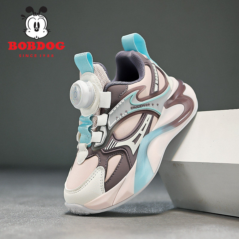 巴布豆女童运动鞋男童春秋皮面防水2025新款软底防滑女孩跑步鞋子