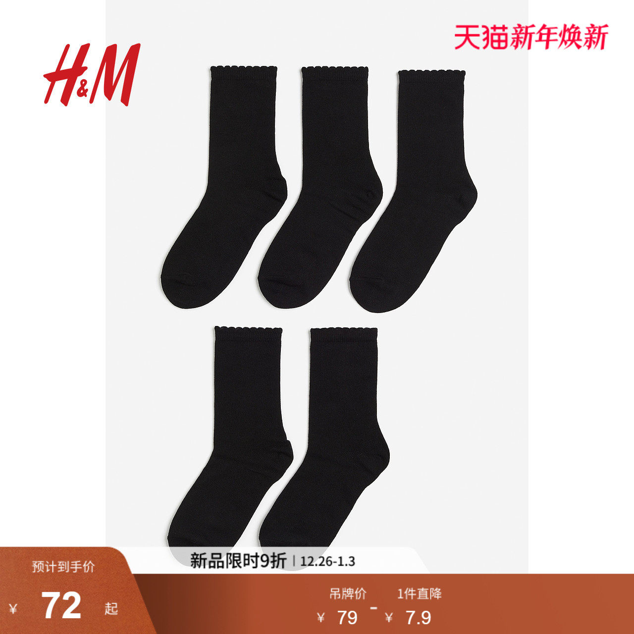 HM女士短袜5对装冬季柔软舒适简约细密针织袜1197409