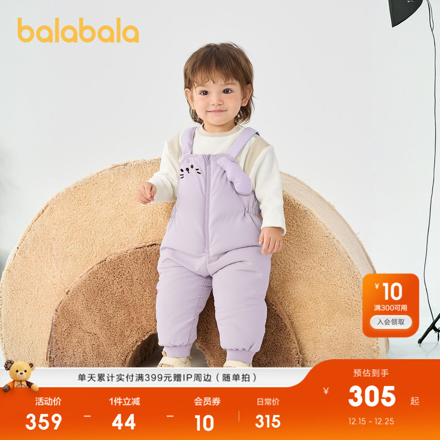 【商场同款】巴拉巴拉宝宝长裤女童羽绒背带裤冬装2025新保暖裤子
