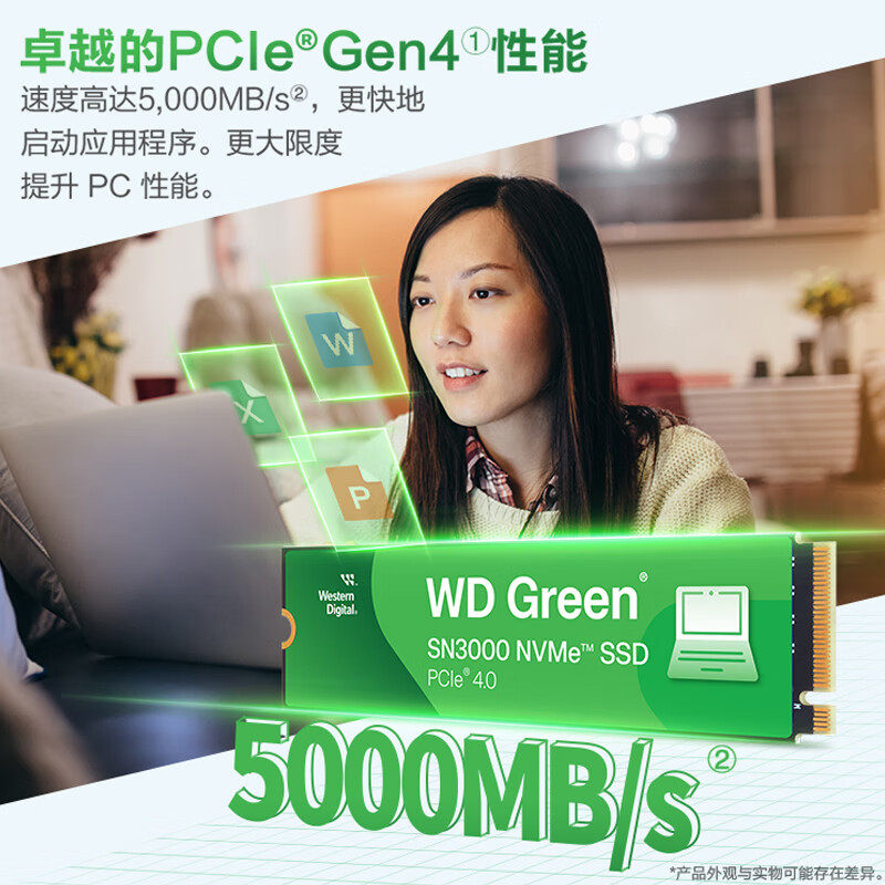 WD西部数据SSD硬盘SN3000西数M.2固态硬盘1t 2t NVMe笔记本台式机