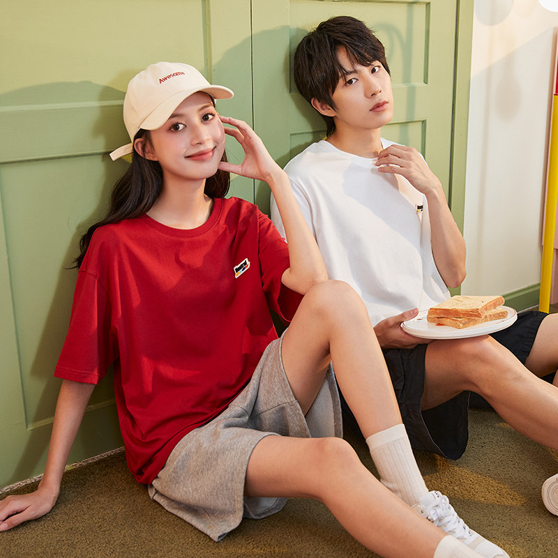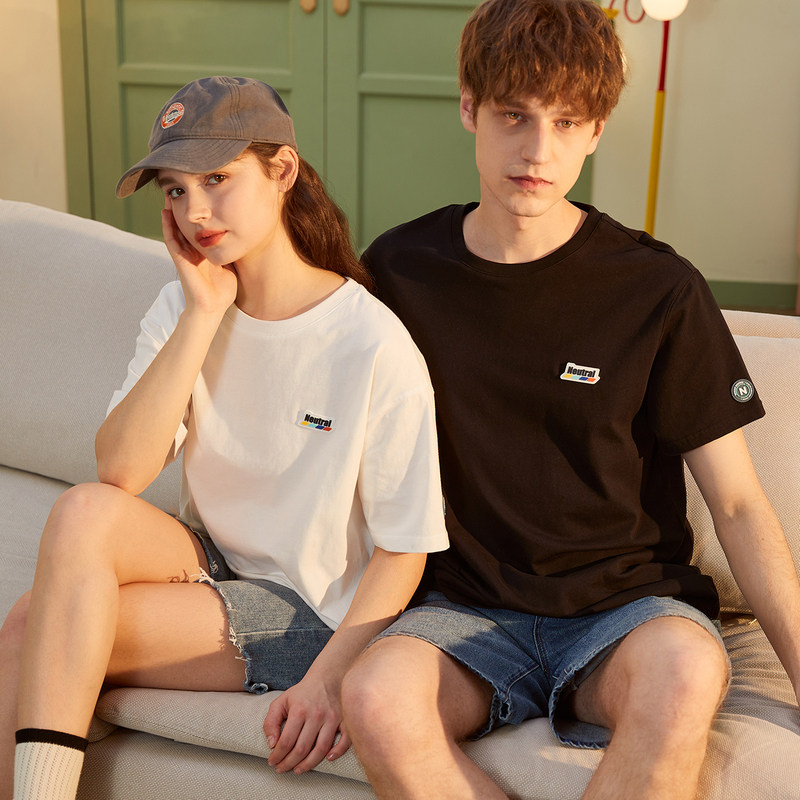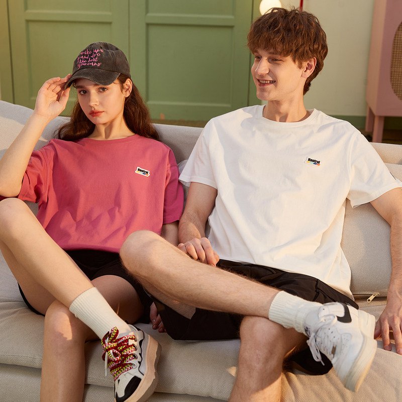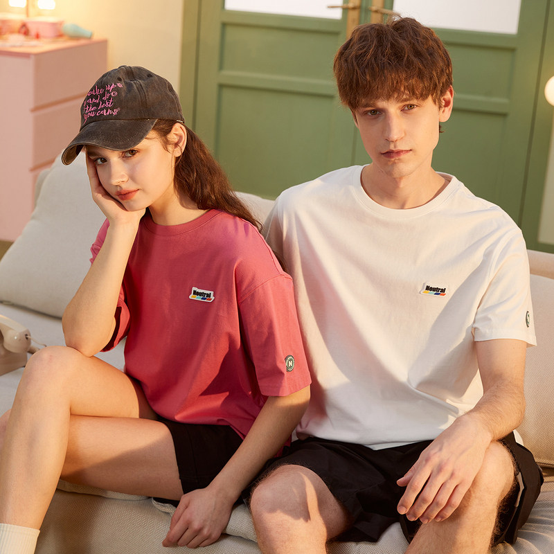 唐狮彩色字母小标夏装情侣装短袖T恤男白色学生半袖上衣女宽松潮