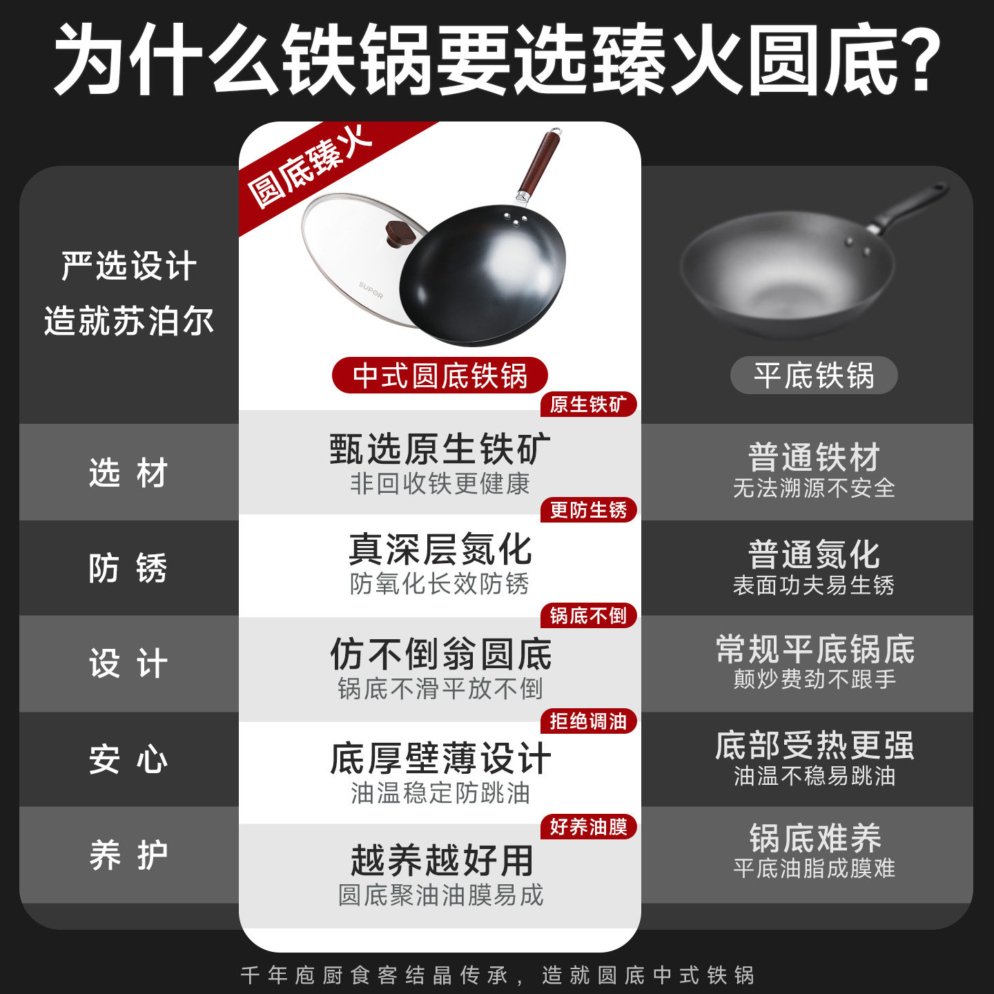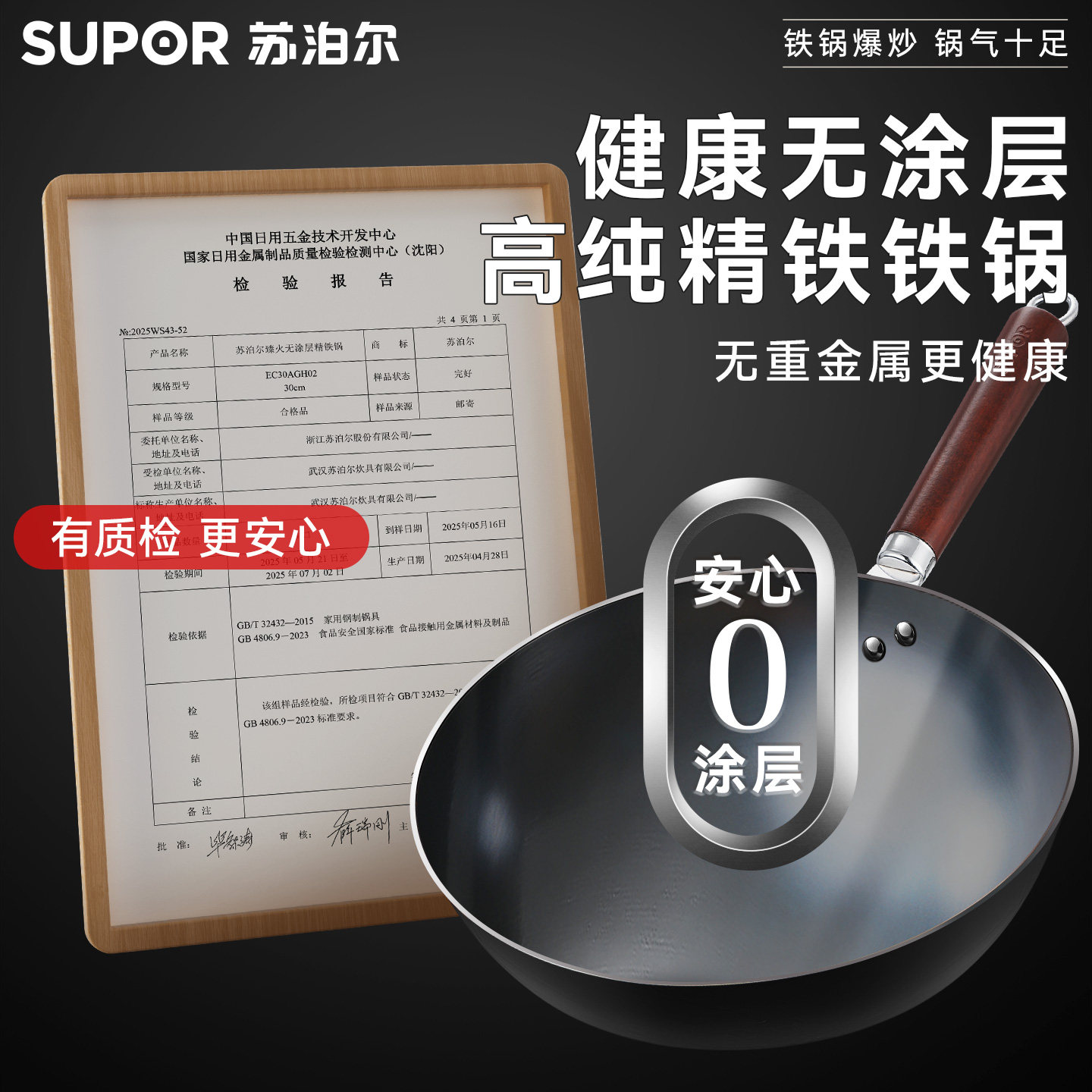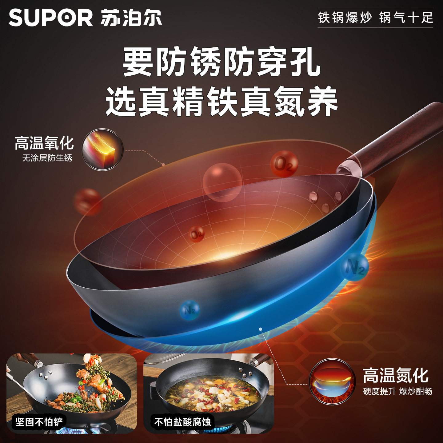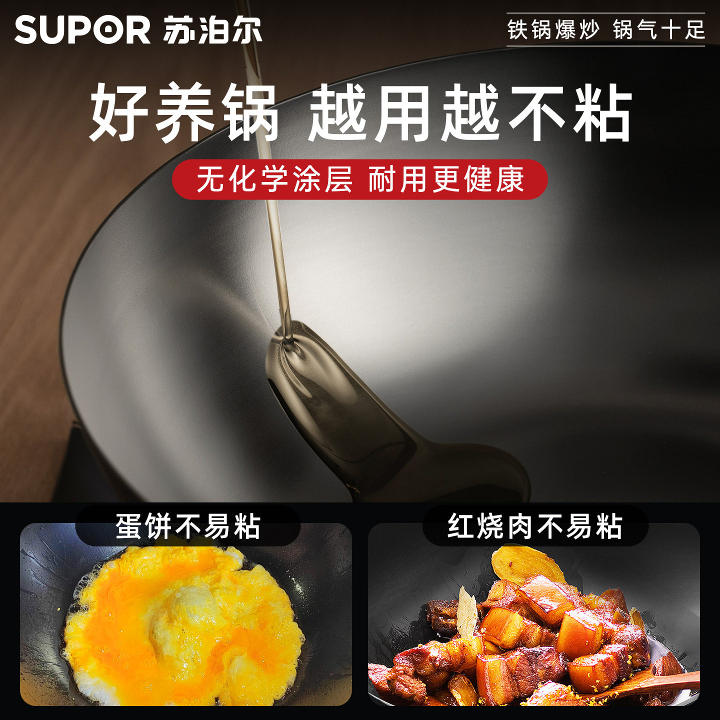 苏泊尔防锈铁锅炒菜锅家用传统无涂层新中式炒锅燃气凹面电磁炉用