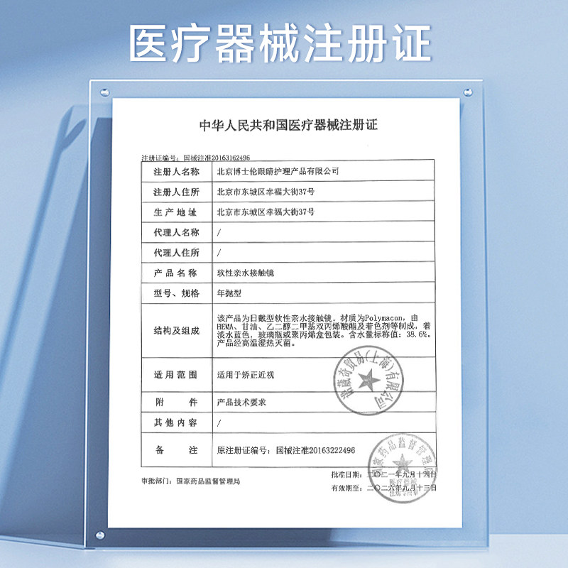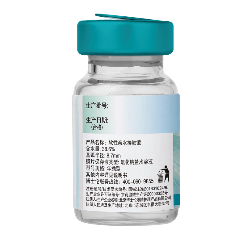 博士伦隐形眼镜年抛1片装盈透水凝胶近视透明片官方正品 宝岛眼镜
