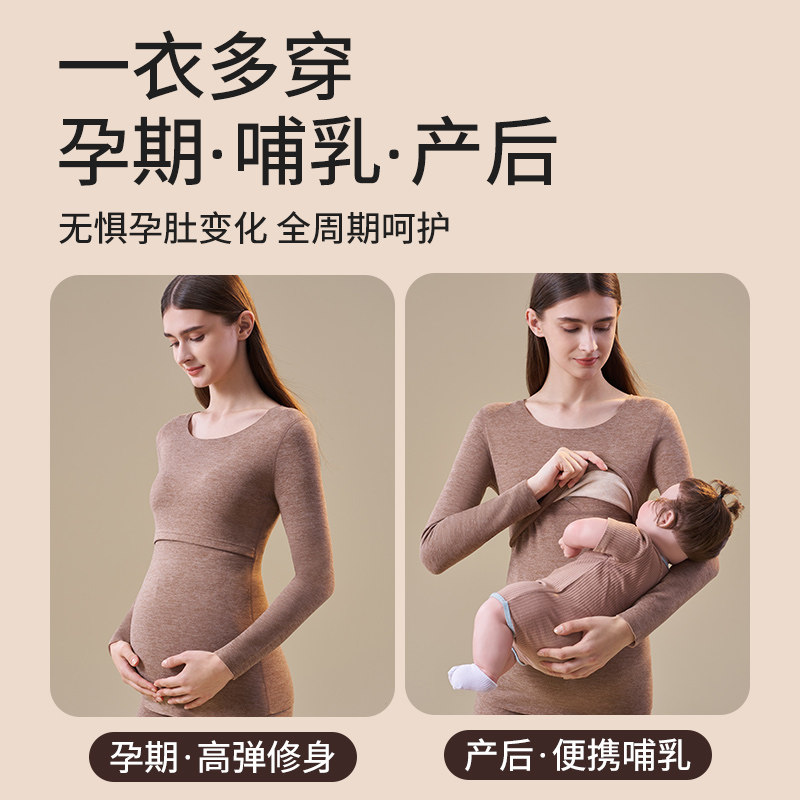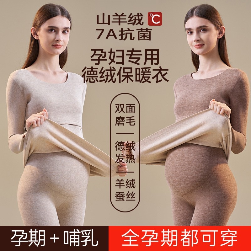孕妇秋衣秋裤套装保暖内衣女孕哺乳期加绒月子服冬季德绒羊绒冬日