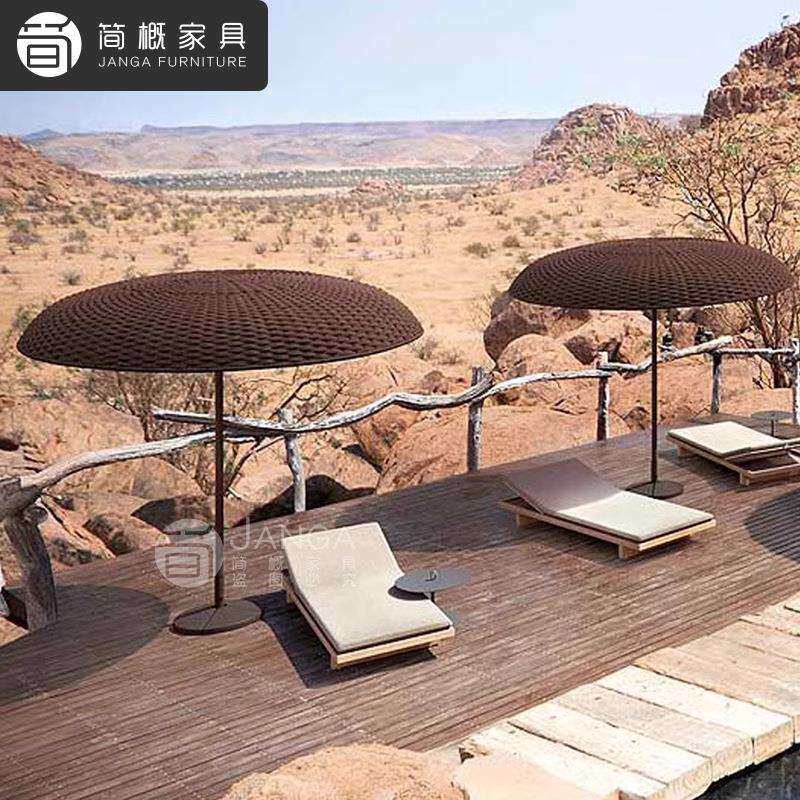 户外别墅泳池遮阳伞庭院藤编太阳伞酒店度假商用休闲网红伞带茶几