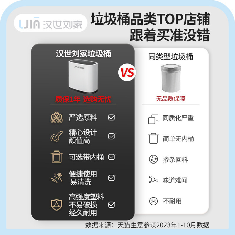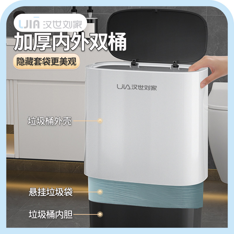 汉世刘家小白桶垃圾桶家用卫生间厕所2025新款客厅厨房带盖大容量
