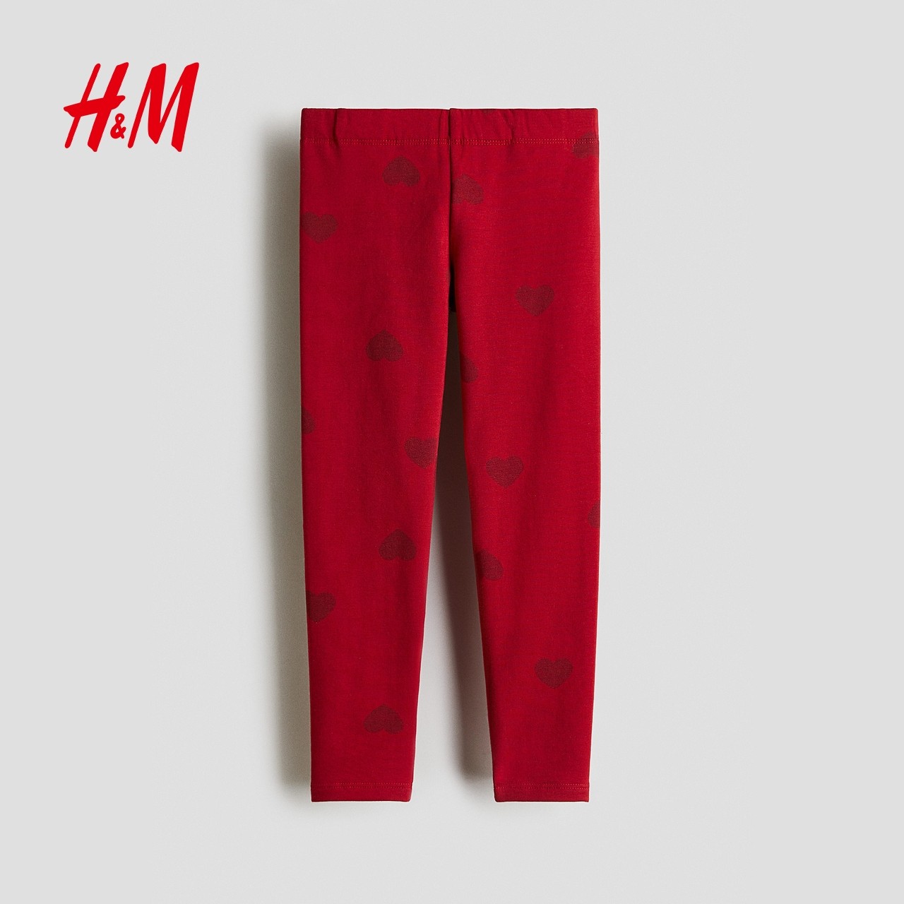 HM童装儿童女童裤子冬季加绒保暖拜年服新年红色打底长裤1193333