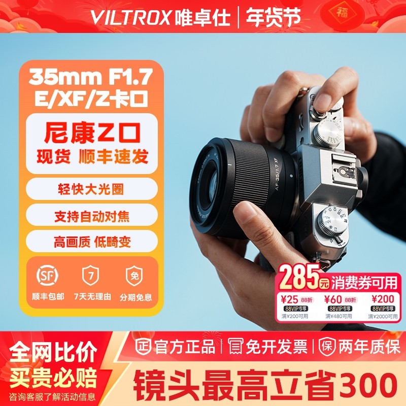 【现货速发】唯卓仕35mmF1.7自动对焦人像镜头适用尼康索尼富士