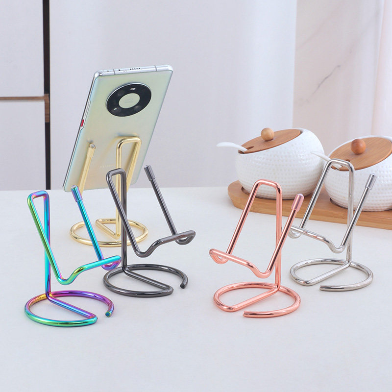 金银色桌面懒人手机铁艺支架简约金属相框支撑架多功能平板座底托