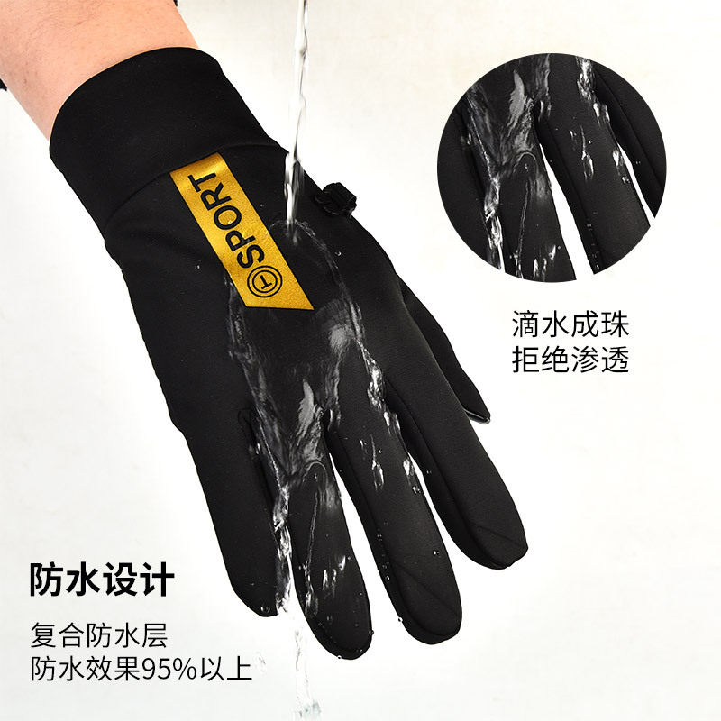 -男士手套秋冬季触屏户外保暖骑行摇粒绒内里五指防风防寒登山