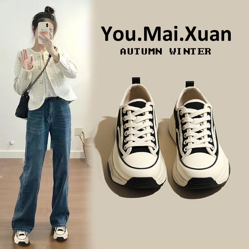 帆布鞋女厚底阿甘鞋小香风女鞋子2025新款春秋休闲运动小白鞋溶解