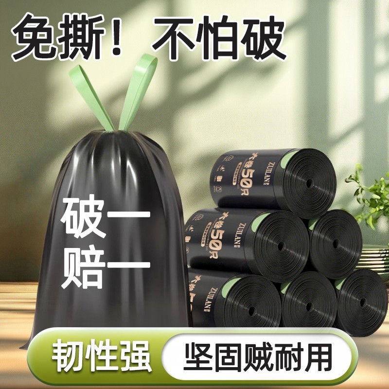 青崎可降解拉抽绳垃圾袋家用加厚手提式厨房环保免撕自动收口大号