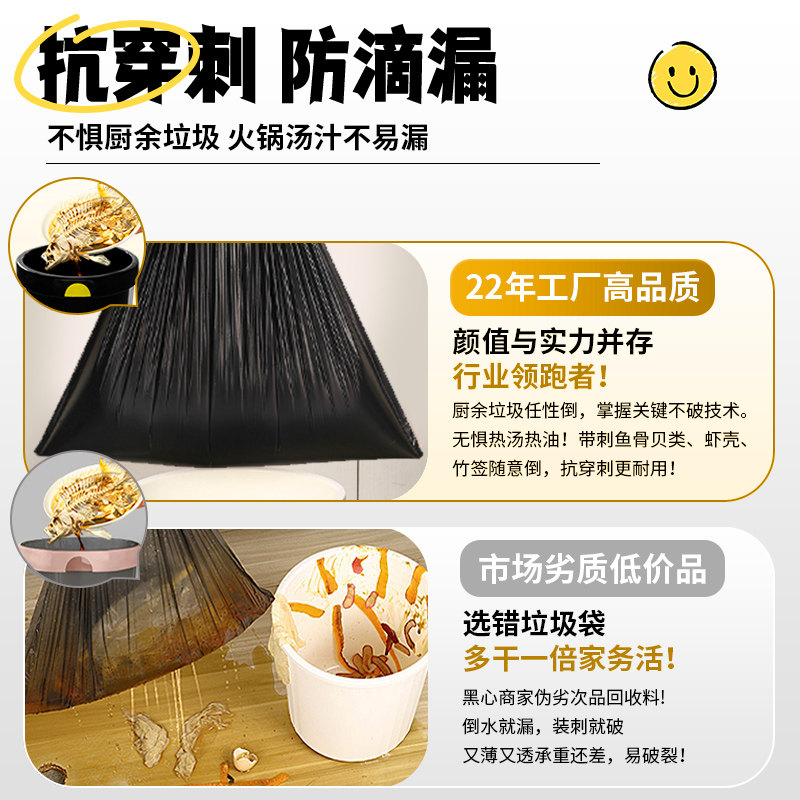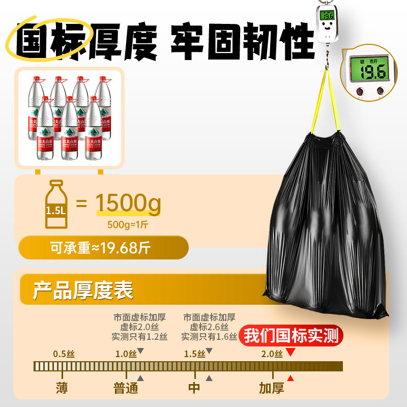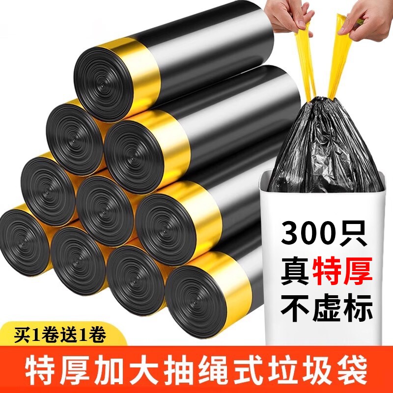 垃圾袋家用加厚手提式抽绳黑色大号厨房塑料袋实惠装收纳特厚分类