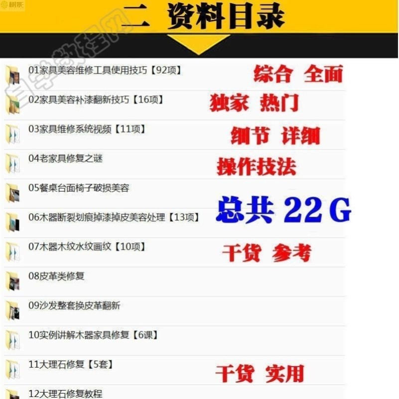 家具维修美容补漆手机U盘视频教程讲解技术修复填色U盘