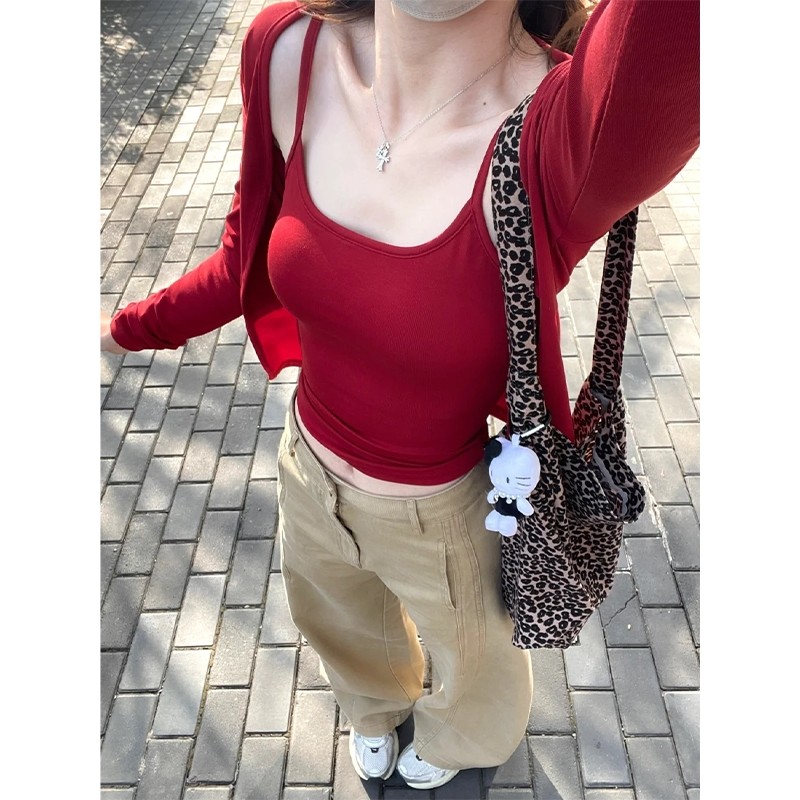 红色吊带背心女夏季修身显瘦带胸垫打底内搭无袖绝美上衣外穿比例