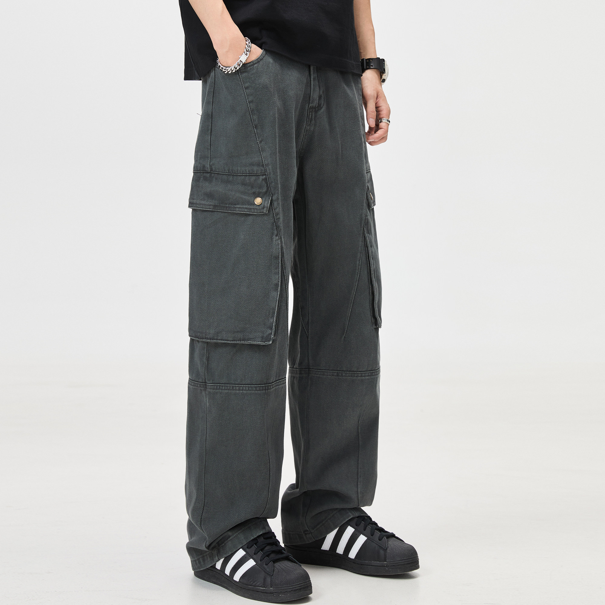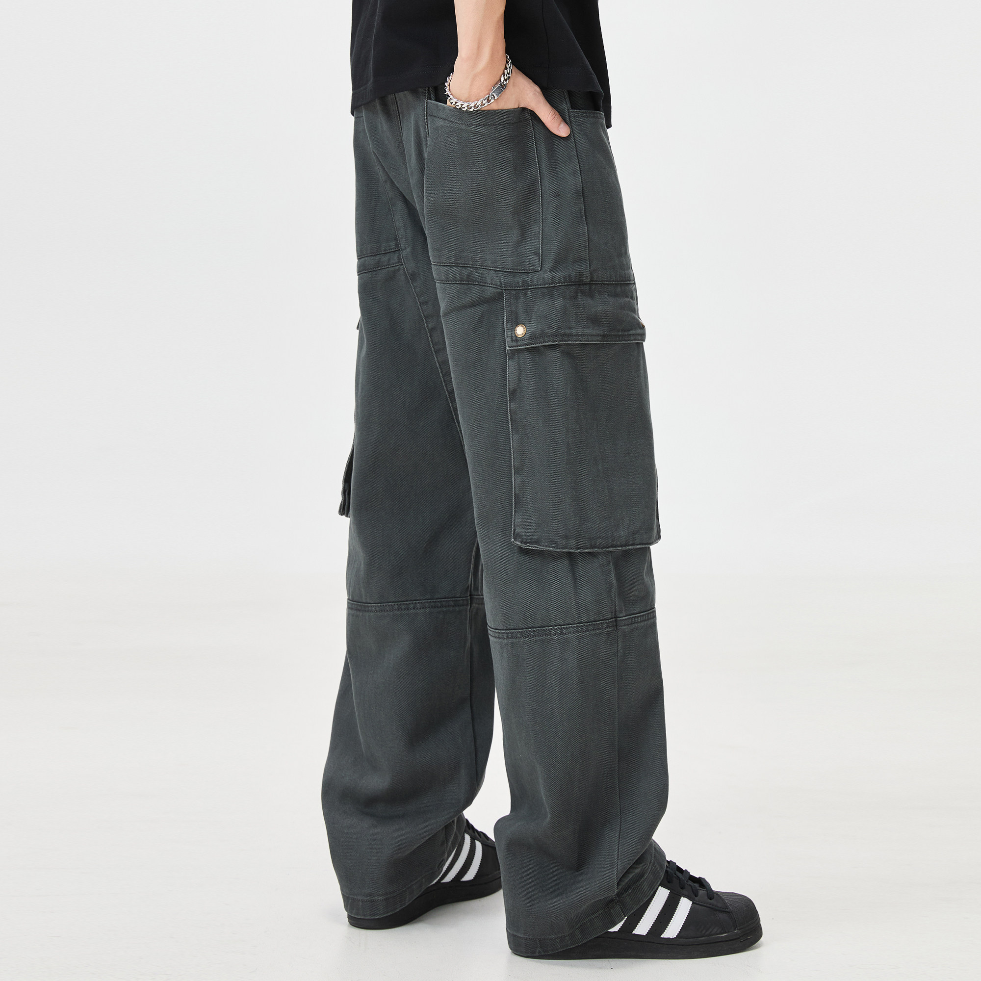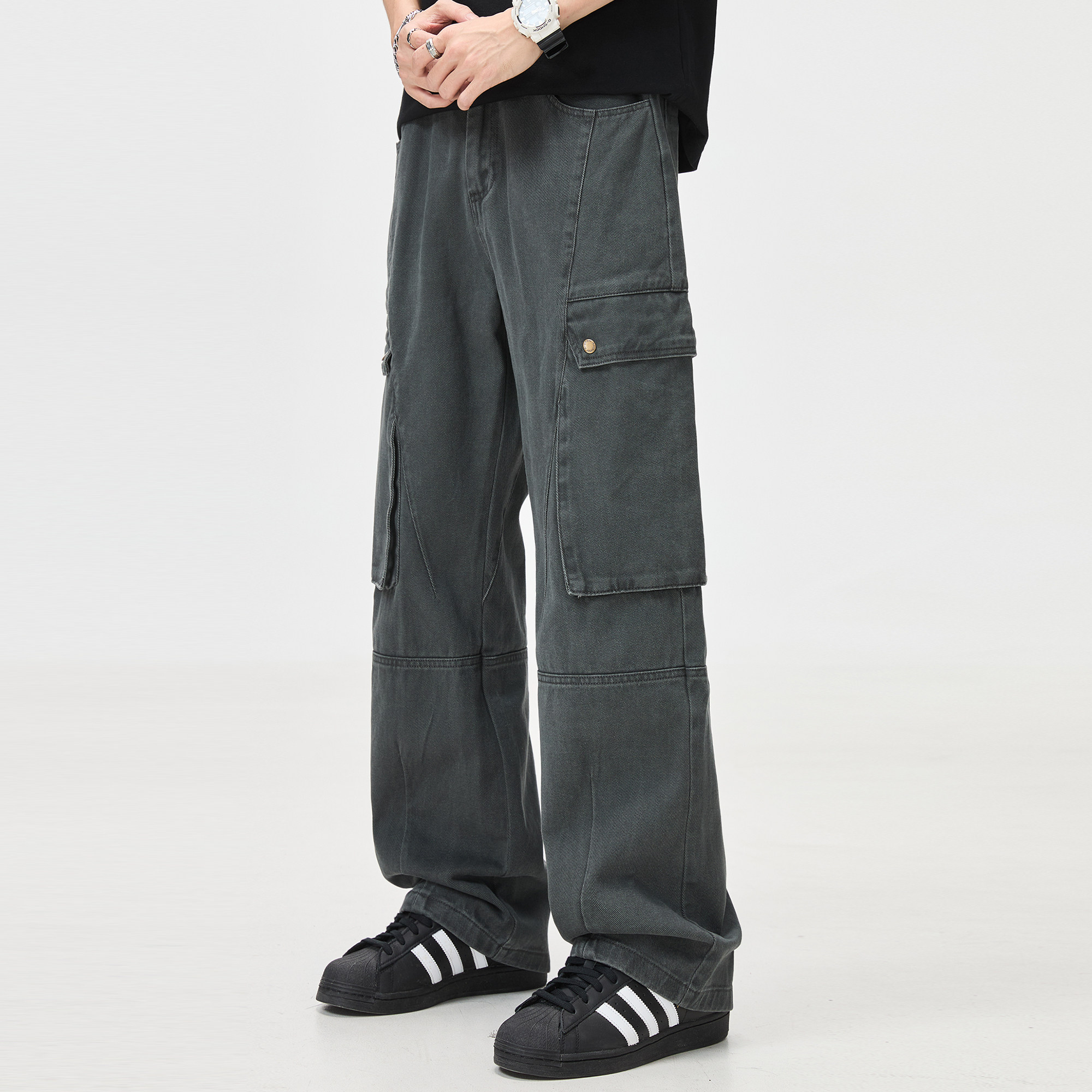 ALLIN 美式复古纯棉工装裤男秋冬潮牌设计感宽松直筒阔腿休闲裤子