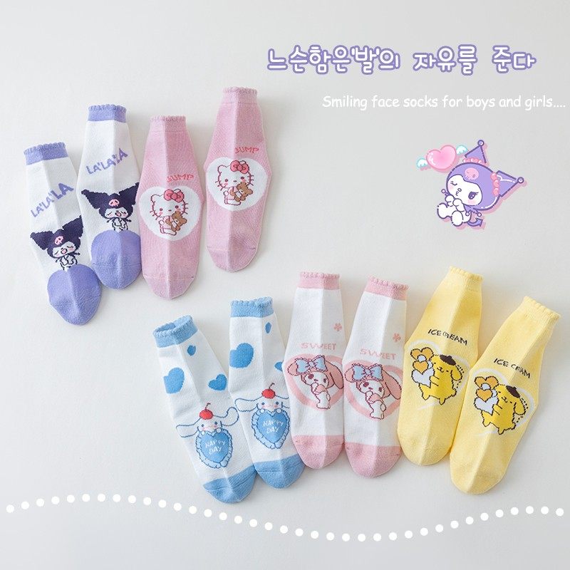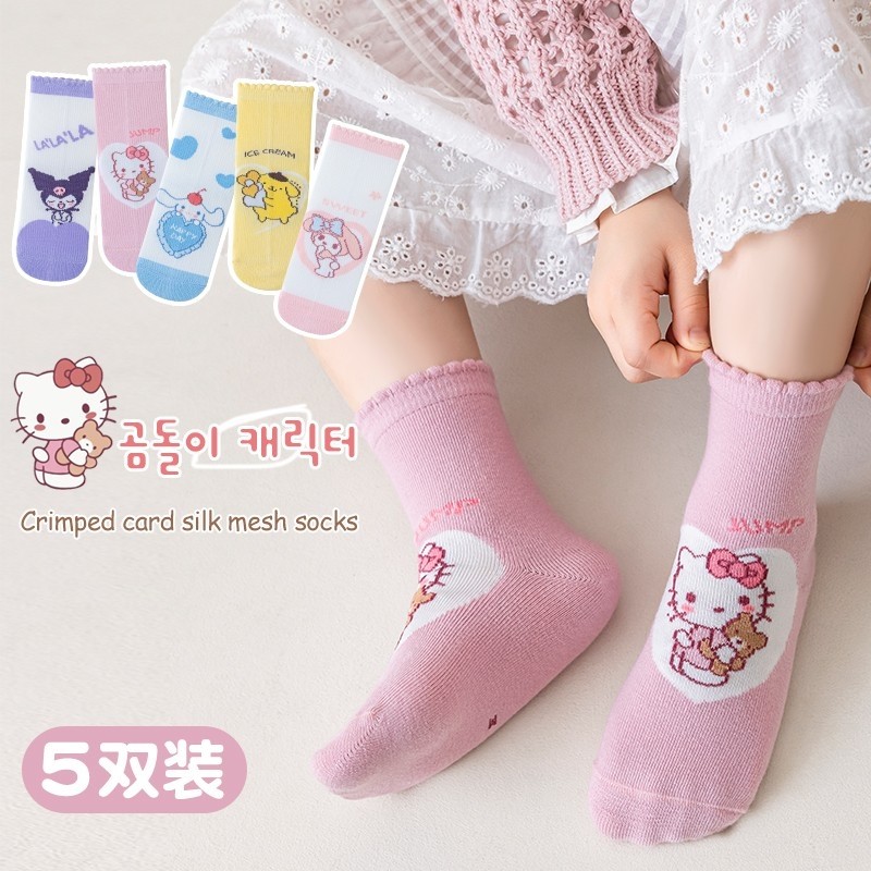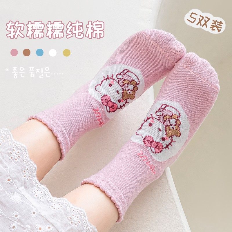 新款春秋儿童袜子卡通美乐蒂库洛米Kitty凯蒂猫1-12岁女孩中筒袜