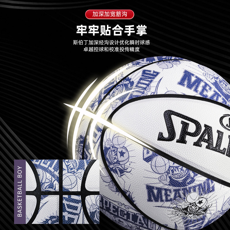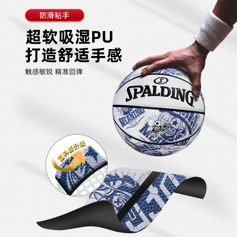 Spalding斯伯丁篮球绝杀系列吸湿软皮大颗粒专业蓝色7号生日礼物