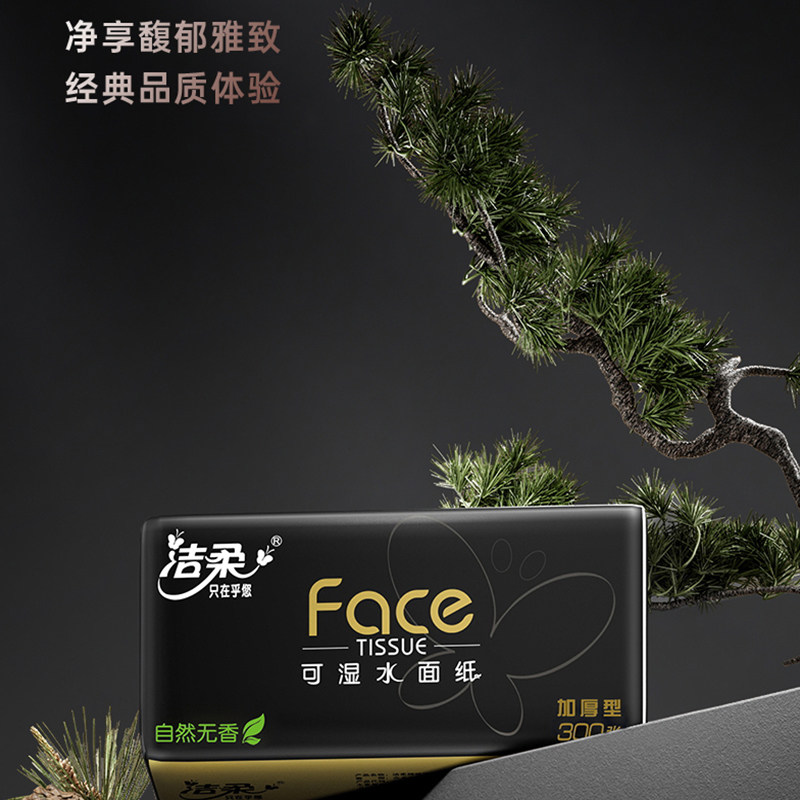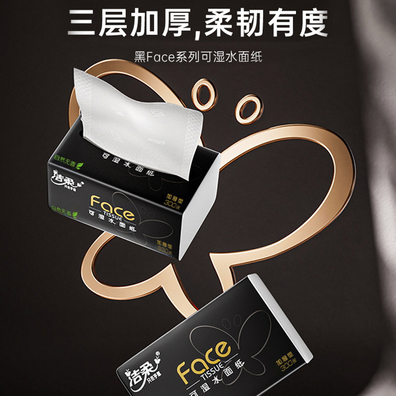 洁柔抽纸黑face无香100抽整提面巾纸厚实家用纸巾餐巾卫生纸抽