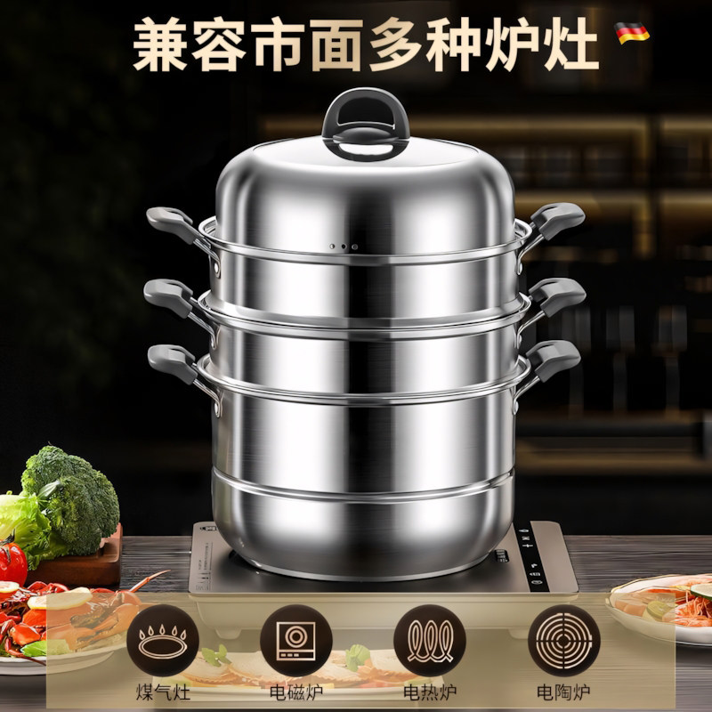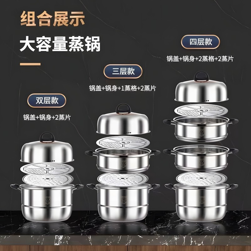 蒸锅家用食品级不锈钢多功能厚汤蒸锅电磁炉锅具多层三层燃气双层