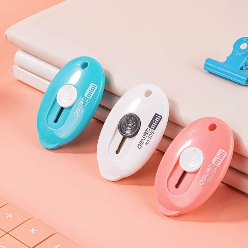 得力美工刀快递刀拆快递神器拆小刀小号割包裹开箱器迷你随身小型专用美术刀裁纸刀学生钥匙扣安全回弹不伤手