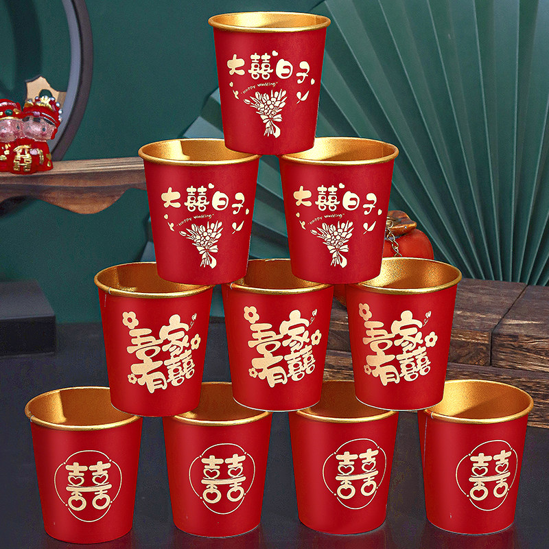 结婚纸杯一次性喜杯子婚礼用品大全婚庆订婚家用婚宴红色加厚水杯