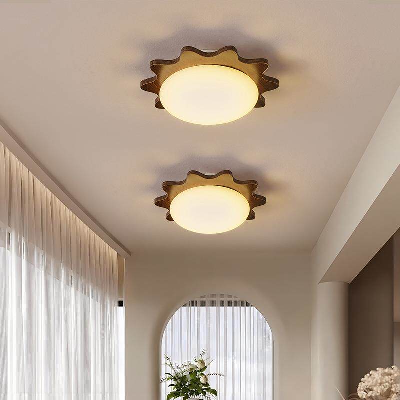 现代简约原木过道吸顶灯新款中山灯具护眼胡桃色楼梯间玄关专用灯