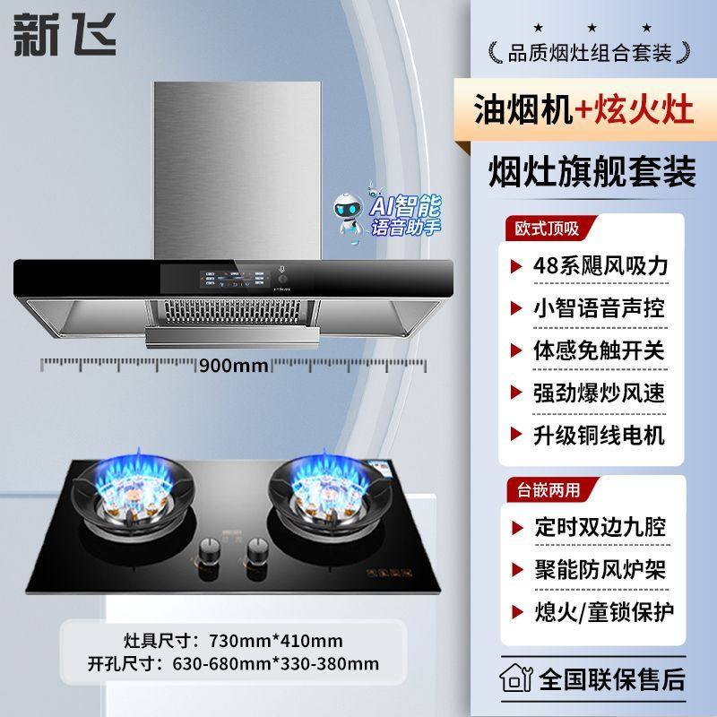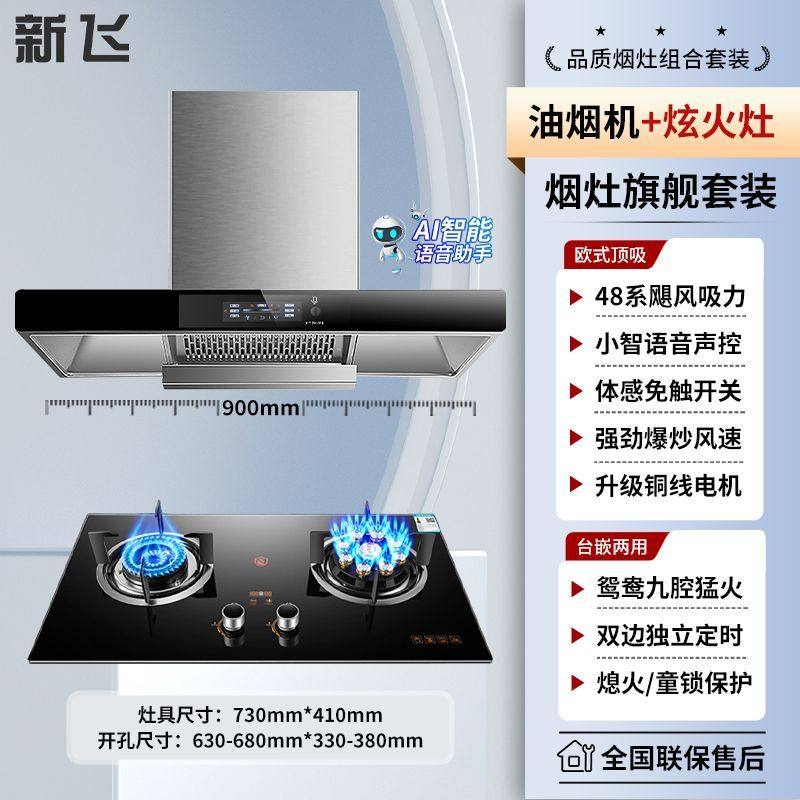 新飞抽油烟机燃气灶组合套装家用厨房大吸力抽油烟机台嵌式猛火灶