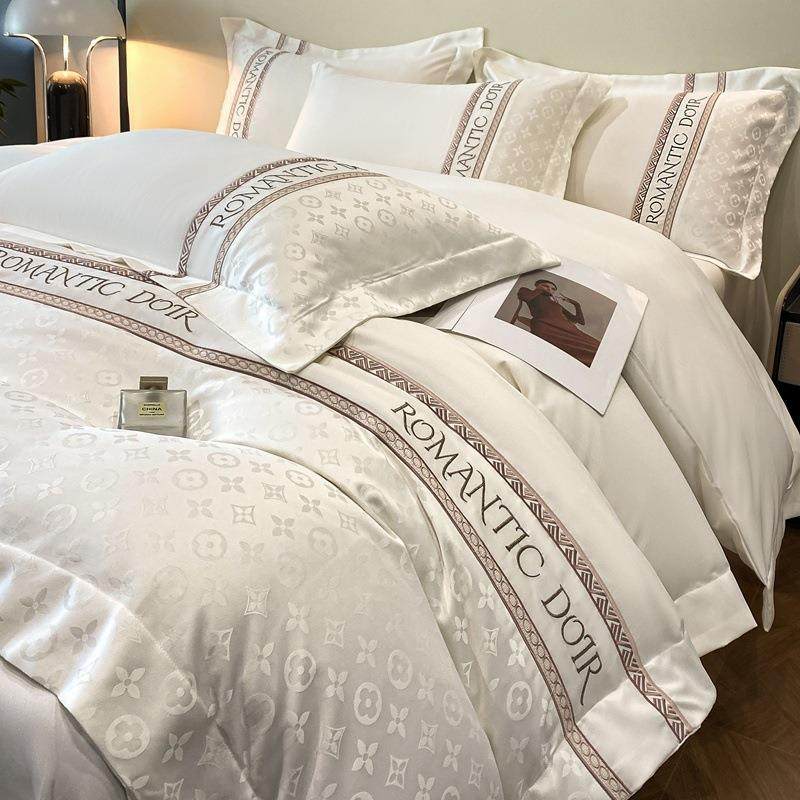 140支贡缎提花四件套冰丝被套夏季床单丝滑凉感被罩轻奢床笠床品4