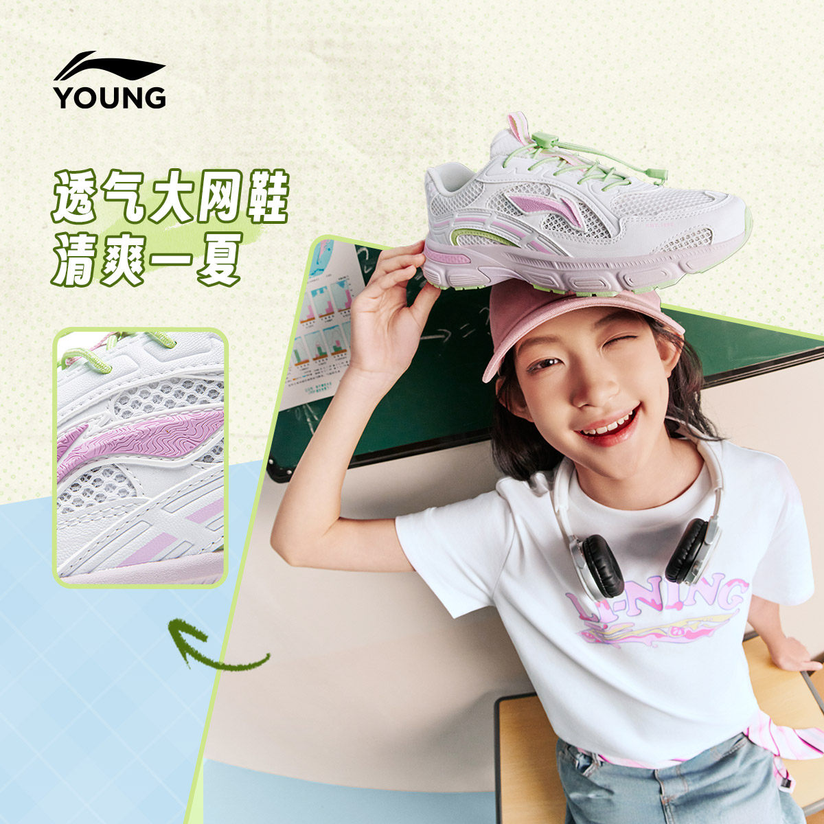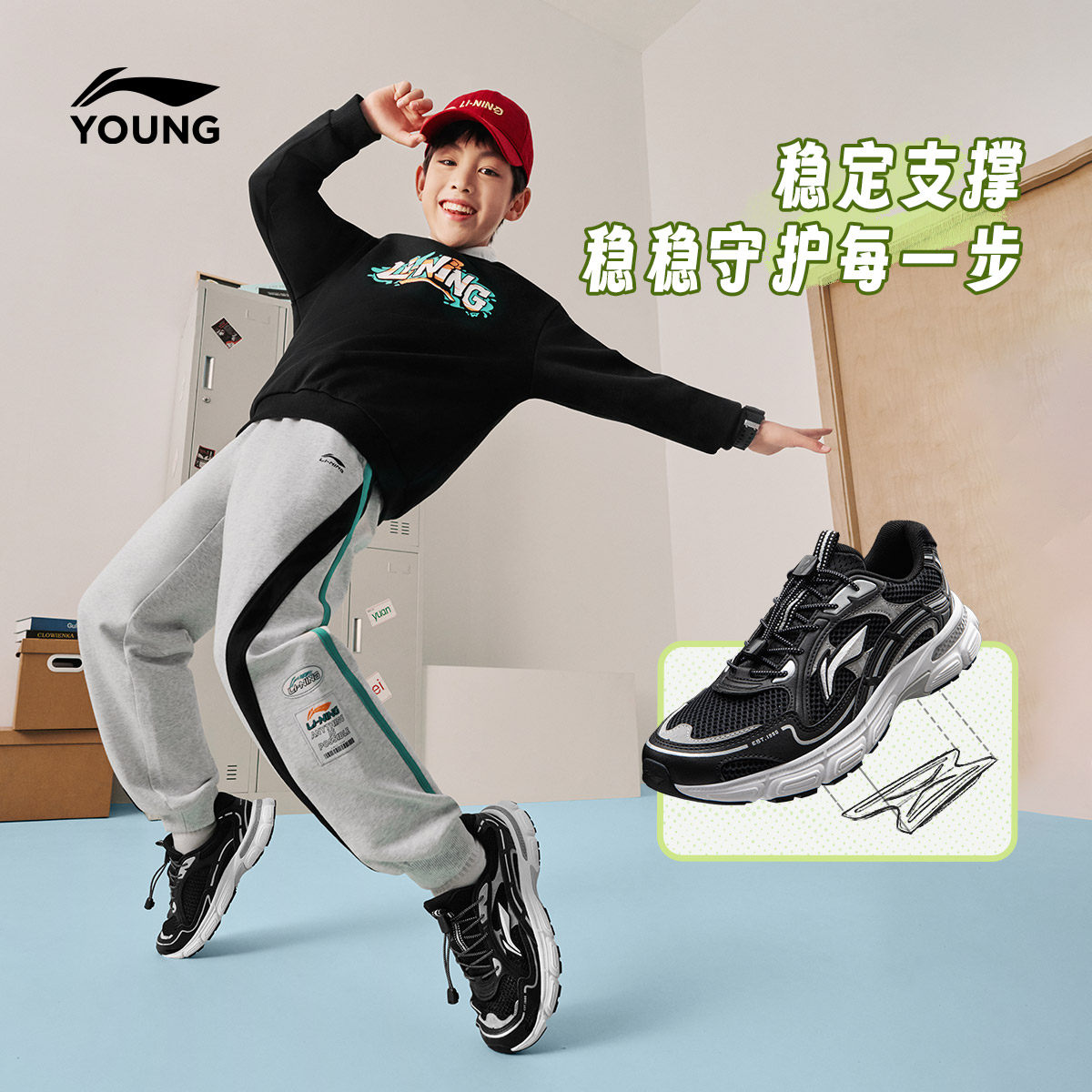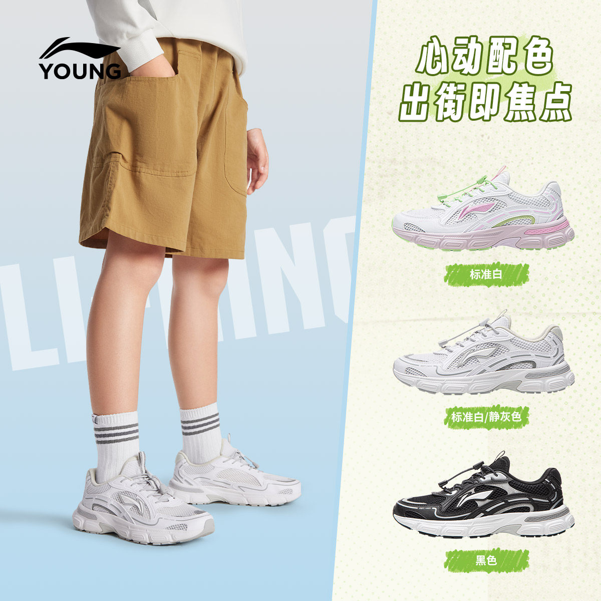 李宁童鞋休闲鞋男女大童2026新款减震回弹圆头青少年低帮童鞋