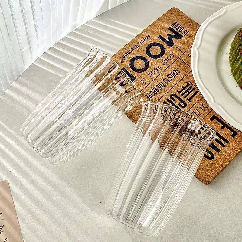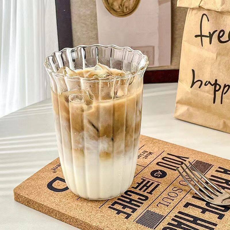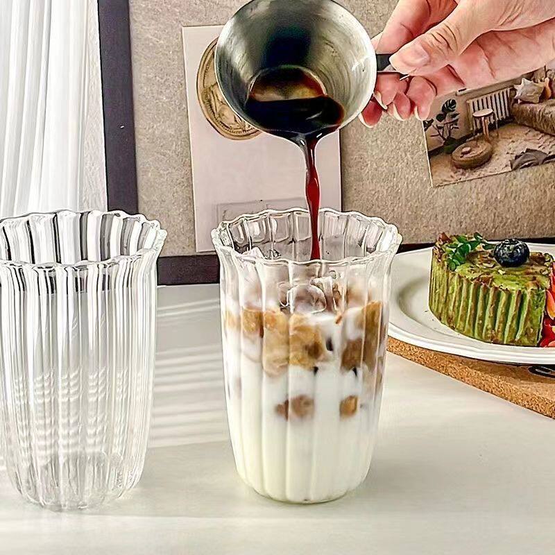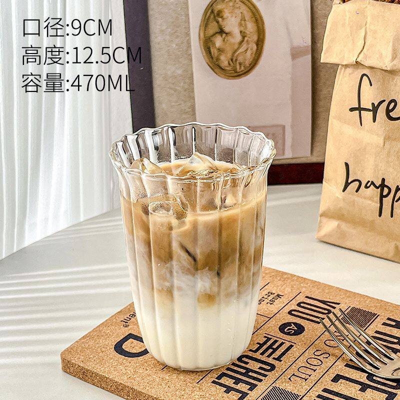 ins耐热花朵条纹杯咖啡拿铁牛奶杯 水果茶汁冷饮玻璃杯简约水杯子