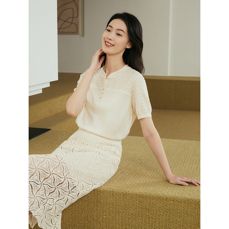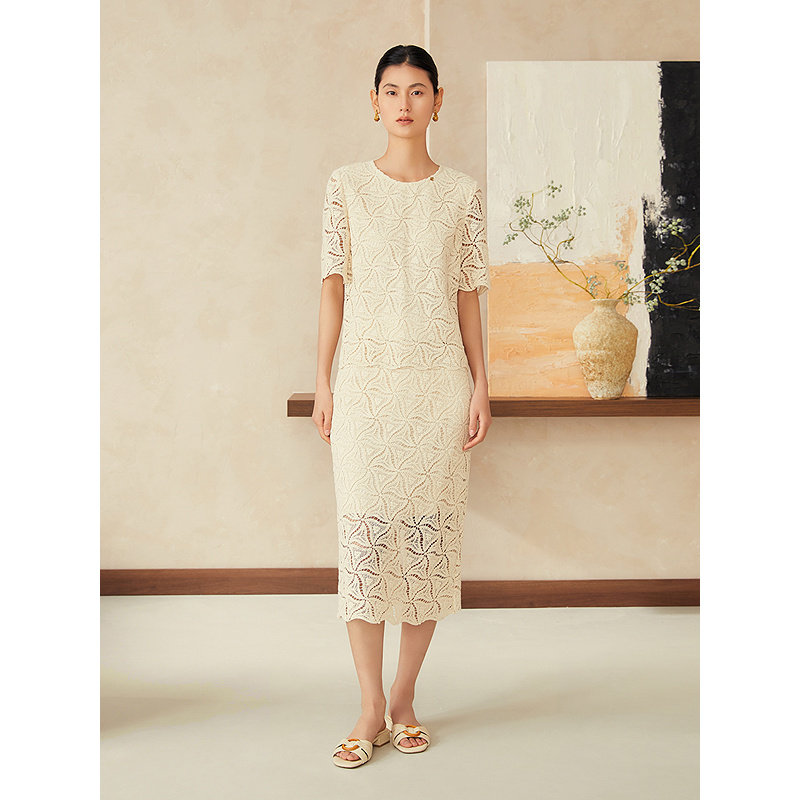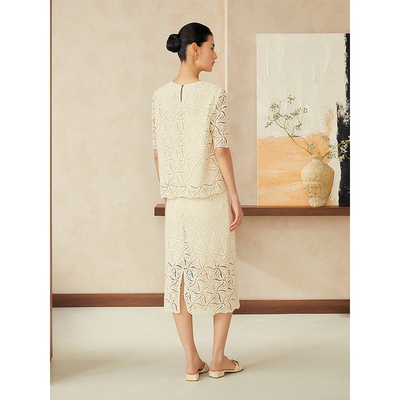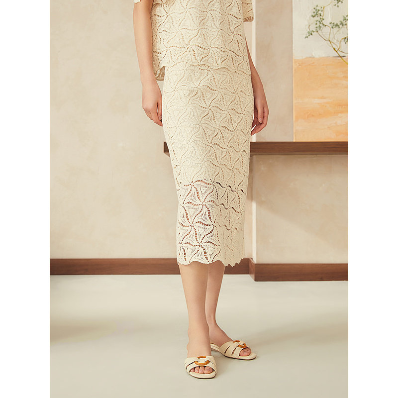 YINER音儿2025夏季新款法式复古绳袖镂空绣花高腰直筒H型半身裙