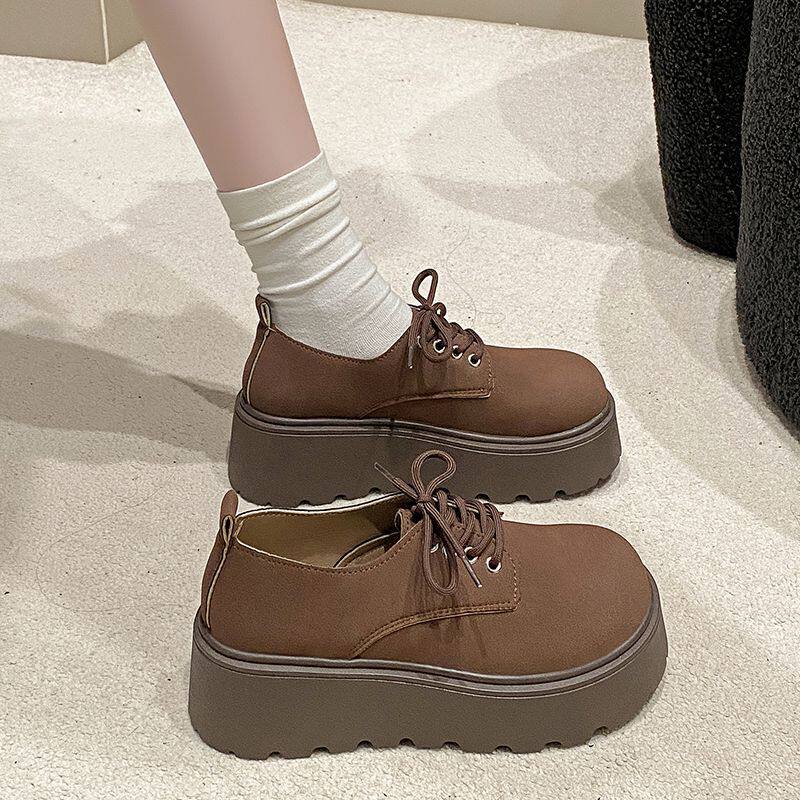 Chio2nd南风 4cm增高磨砂牛皮德训鞋子女款秋冬复古休闲鞋运动鞋