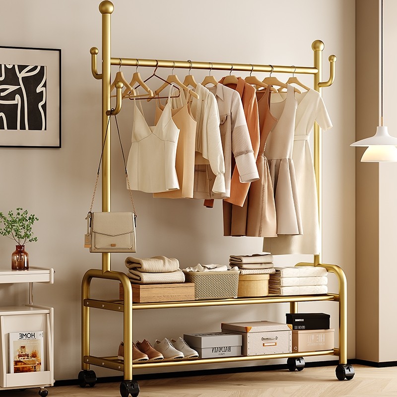 挂衣架可移动晾衣架衣帽架落地阳台卧室内衣服收纳架家用双层置物